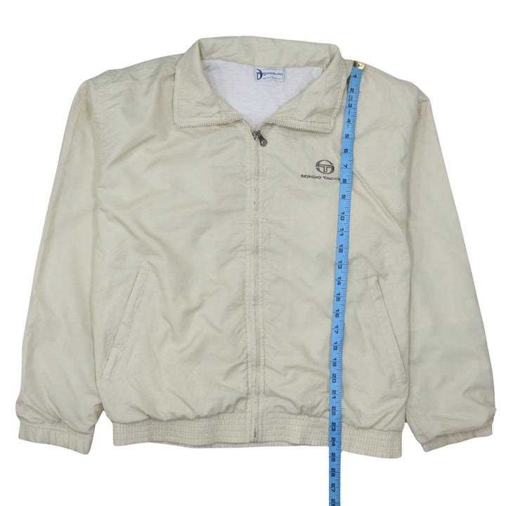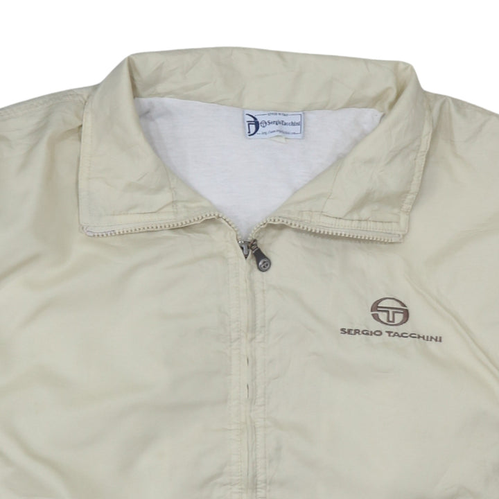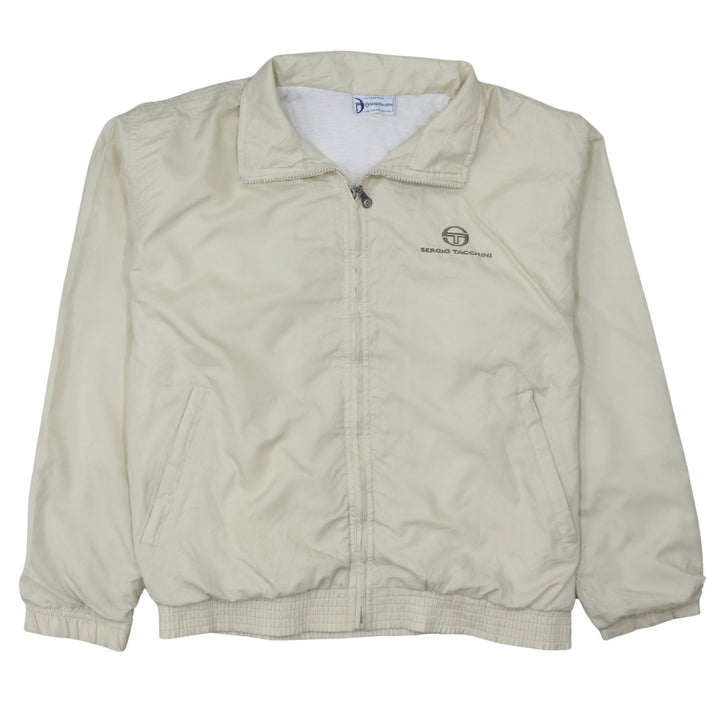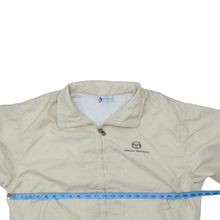 Sergio Tacchini Beige Cream Windbreaker Jacket Men's Large Zip Pockets Printed Logo Outerwear