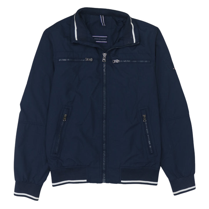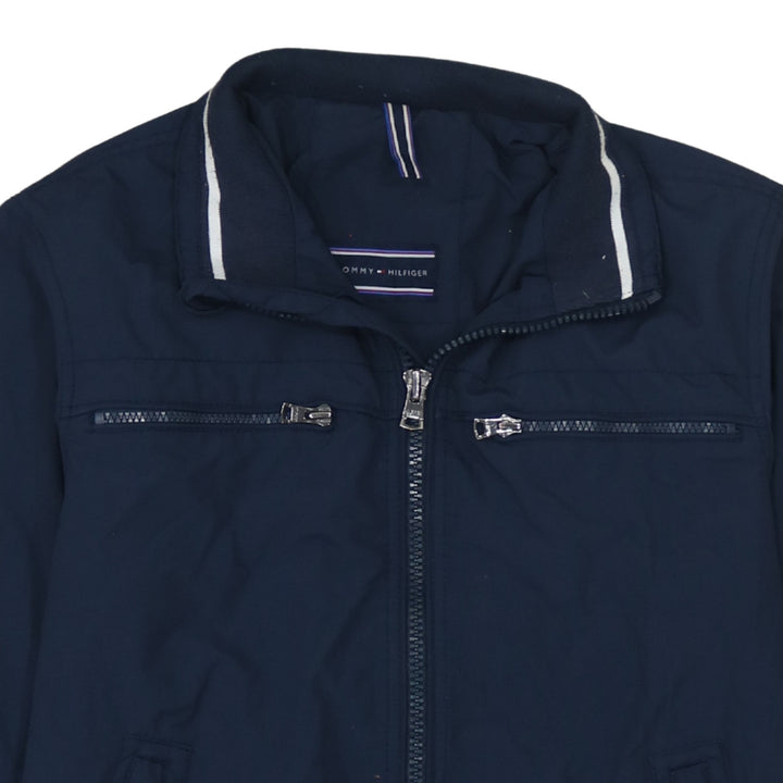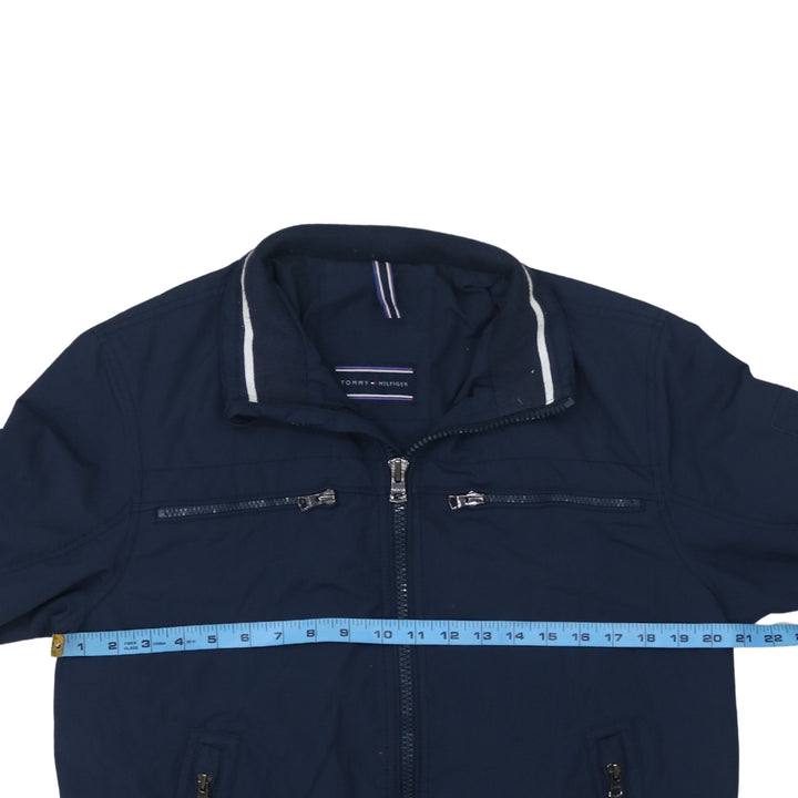 Tommy Hilfiger Navy Blue Windbreaker Jacket Men's Small Zip Pockets Ribbed Trim Outerwear