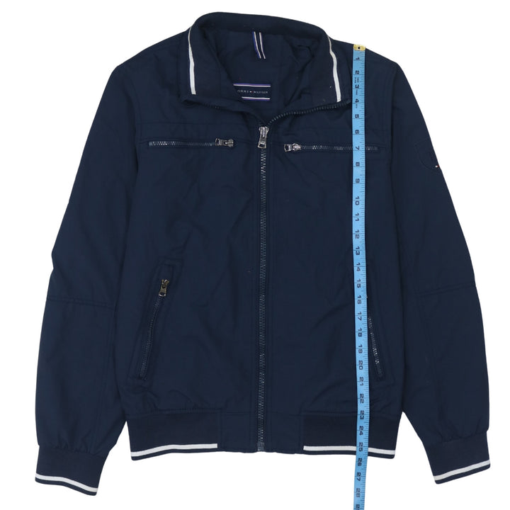 Tommy Hilfiger jacket, Tommy Hilfiger windbreaker, Tommy Hilfiger navy jacket, navy blue windbreaker, men's Tommy Hilfiger jacket, men's navy jacket, men's small jacket, small windbreaker, lightweight jacket, full zip jacket, zip up jacket, track jacket, casual outerwear, polyester jacket, mesh lining jacket, ribbed hem jacket, ribbed cuffs jacket, ribbed collar jacket, zip pockets jacket, chest zip pockets, side zip pockets, navy casual jacket, everyday jacket, classic Tommy Hilfiger, designer jacket, men's outerwear, spring jacket, autumn jacket, bomber style jacket, sporty jacket, casual sports jacket, blue Tommy Hilfiger coat, small men's outerwear, zipper front jacket, shell jacket, A grade condition jacket, pre-owned Tommy Hilfiger, second hand designer jacket, relaxed fit jacket, vintage Tommy Hilfiger style, navy blue casual coat, lightweight casual layer, wind resistant jacket, stylish men's jacket, classic navy coat, wardrobe staple jacket, versatile navy jacket, Tommy logo jacket