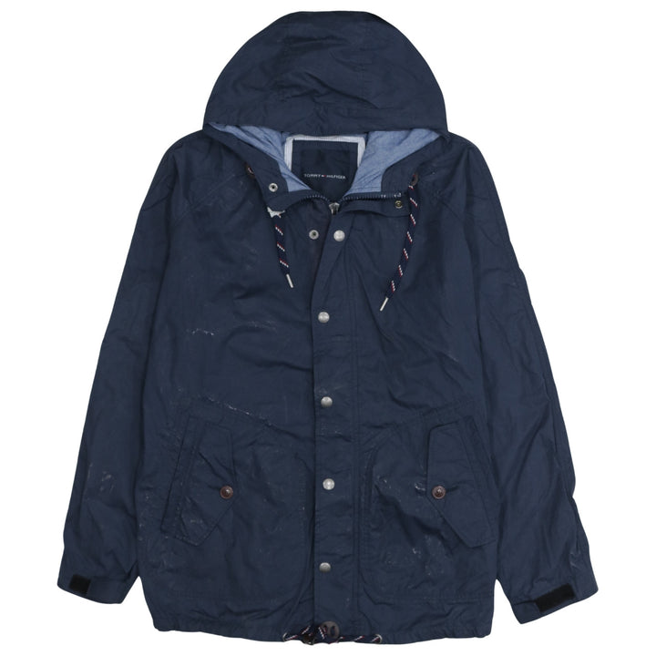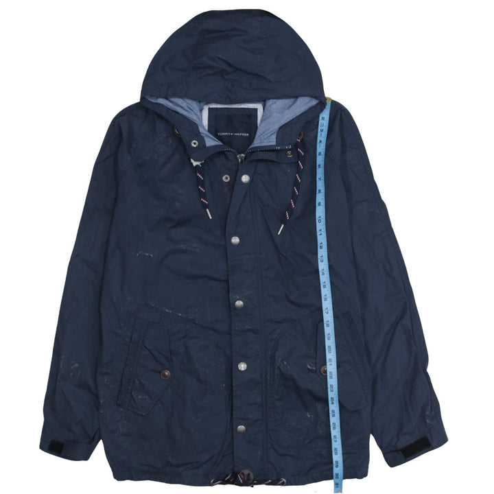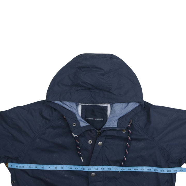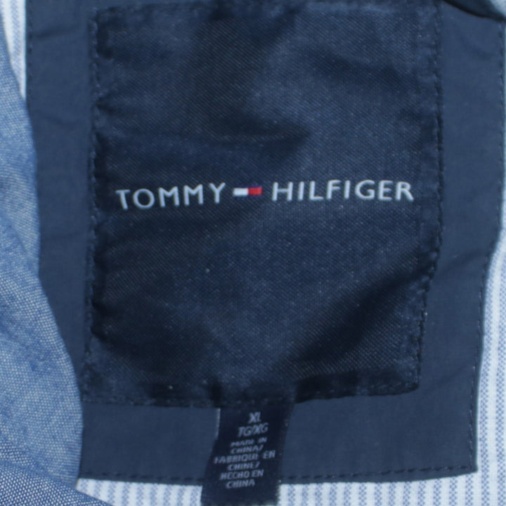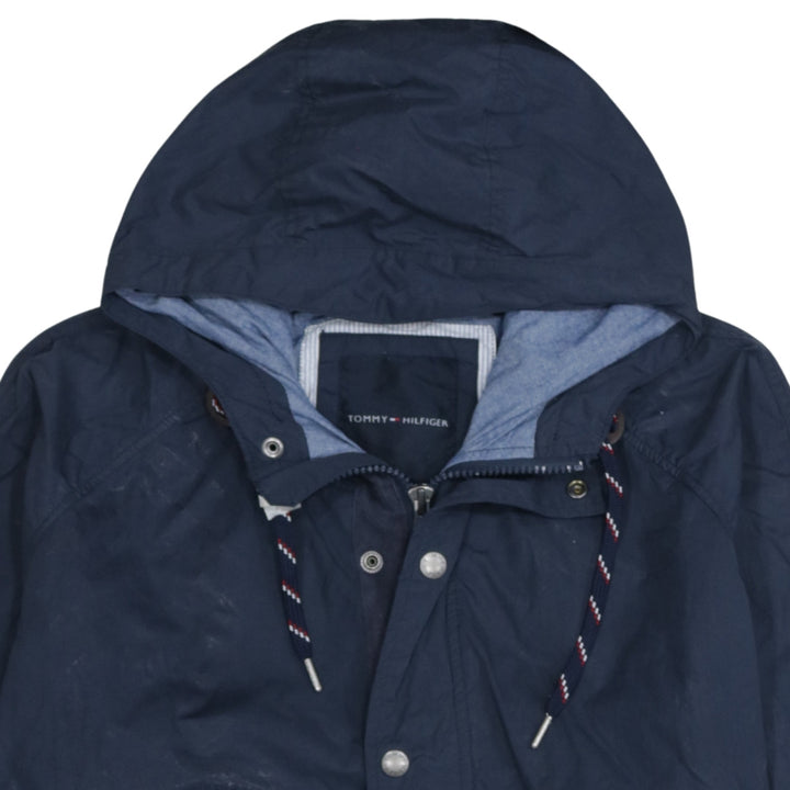 Tommy Hilfiger, Tommy Hilfiger jacket, Tommy Hilfiger windbreaker, navy Tommy jacket, navy blue hooded jacket, men's Tommy Hilfiger coat, men's hooded windbreaker, men's XLarge jacket, XL hooded jacket, nylon cotton jacket, lightweight shell jacket, zip front jacket, snap front jacket, drawstring hood coat, navy outdoor jacket, casual outerwear, everyday jacket, spring jacket, autumn jacket, festival jacket, walking jacket, waterproof style jacket, branded men's jacket, designer men's outerwear, navy hooded coat, relaxed fit jacket, oversized fit jacket, classic Tommy Hilfiger style, logo jacket, men's casual coat, blue windbreaker, hooded shell coat, practical pockets jacket, adjustable cuffs jacket, adjustable hem jacket, layering jacket, pre-owned Tommy Hilfiger, second hand Tommy Hilfiger jacket, men's navy coat, nylon windbreaker, cotton lined jacket, zip up coat, hooded outer layer, wardrobe staple jacket, everyday wear jacket, casual street jacket, commuter jacket, outdoor wear, men's fashion jacket