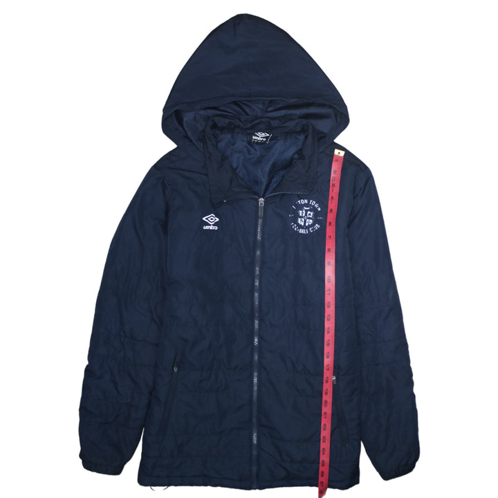 Umbro jacket, Umbro hooded jacket, Umbro windbreaker, Umbro track jacket, Umbro football jacket, navy Umbro jacket, navy blue hooded jacket, mens Umbro coat, mens small Umbro, small Umbro jacket, padded windbreaker, football club jacket, embroidered Umbro logo, embroidered crest jacket, full zip Umbro, zip up jacket, casual sports jacket, training jacket, football training coat, lightweight padded coat, nylon shell jacket, polyester jacket, navy outerwear, mens sportswear, terrace wear jacket, casual football coat, everyday hooded jacket, zipped pockets jacket, elasticated cuff jacket, relaxed fit jacket, 20 inch pit to pit, 27 inch length, 22 inch sleeve, classic Umbro design, navy blue sports coat, mens hooded windbreaker, lined sports jacket, football fan jacket, casual weekend jacket, layering piece, outdoor training wear, pitchside jacket, sports casual outerwear, quilted shell jacket, athleisure jacket, mens navy coat, Umbro fan gear, collectible Umbro piece, football club outerwear, vintage Umbro style