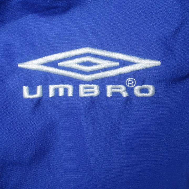 Umbro, Umbro jacket, Umbro windbreaker, Umbro track jacket, royal blue jacket, blue windbreaker, men's Umbro, men's track top, men's windbreaker, XSmall Umbro, XS jacket, nylon jacket, lightweight jacket, full zip jacket, stand collar jacket, embroidered logo jacket, football training jacket, soccer training top, sports jacket, athletic outerwear, blue sports coat, black panel jacket, contrast piping jacket, elastic cuffs jacket, casual jacket, everyday outerwear, layering jacket, 90's Umbro style, classic Umbro design, men's outerwear, small men's jacket, training top, windbreaker coat, track top blue, vintage Umbro jacket, royal blue track jacket, embroidered Umbro logo, Umbro double diamond, shell jacket, spring jacket, autumn jacket, casual sportswear, festival jacket, terrace wear, old school Umbro, football fan jacket