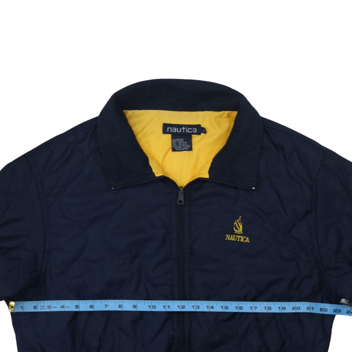 Nautica Navy Blue Quilted Jacket Women's Large Embroidered Logo Zip Pockets Outerwear