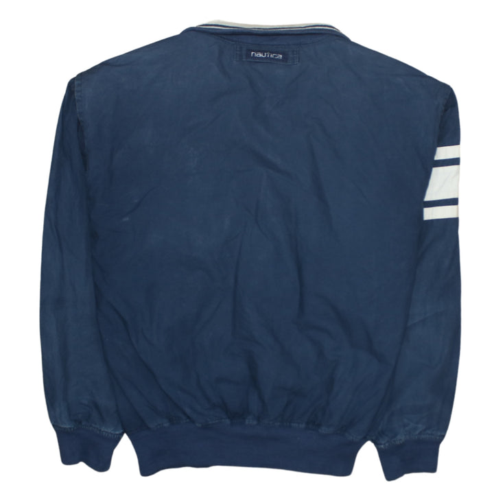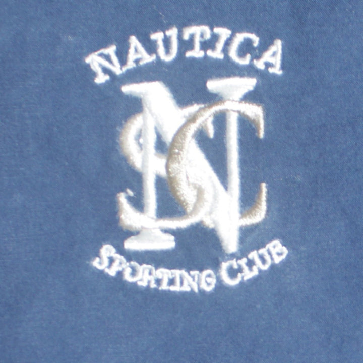 Nautica Navy Blue Windbreaker Jacket Men’s XLarge Embroidered Sporting Club Logo Stripe Sleeve Outerwear