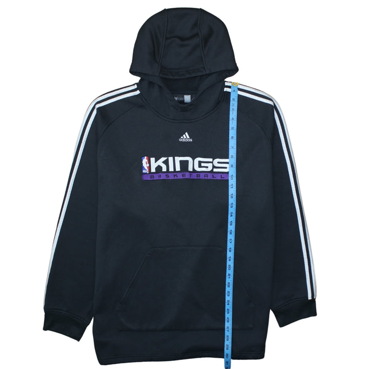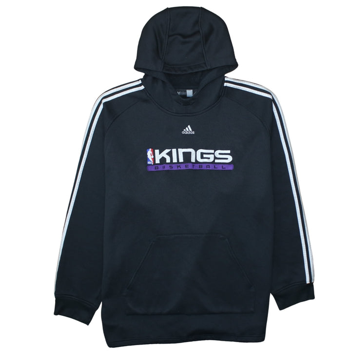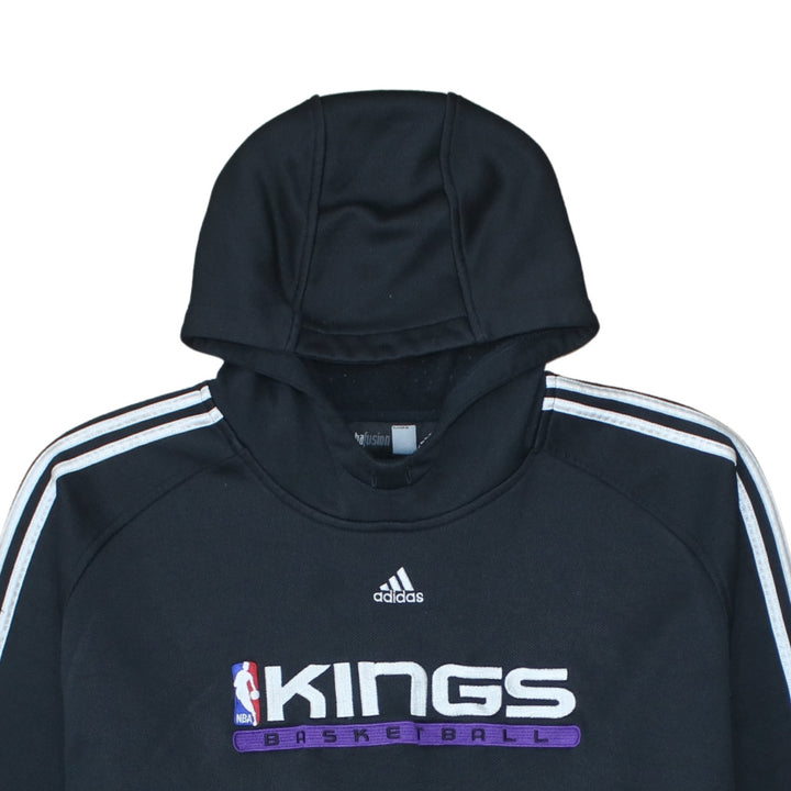 Key Features: NBA Kings Basketball chest graphic, Adidas three stripes sleeves, cosy fleece lining, front pocket