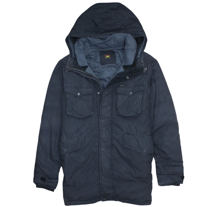 Lee Navy Parka Jacket Men's XLarge Hooded Zip Pockets Warm Lined Coat Outerwear