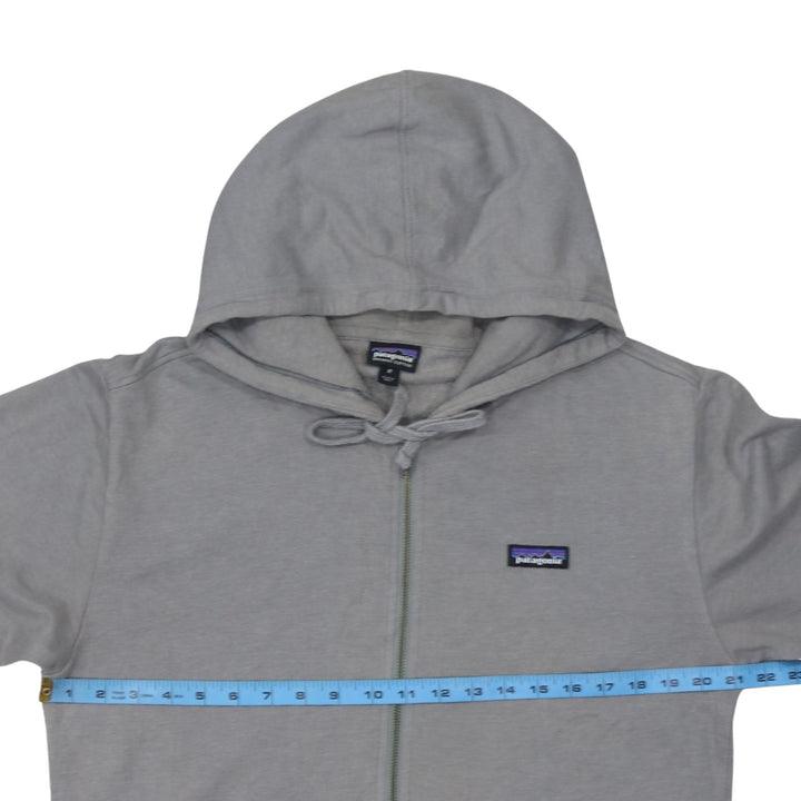 Patagonia Grey Zip Hoodie Women’s Medium Embroidered Chest Logo Drawstring Full Zip Sweatshirt