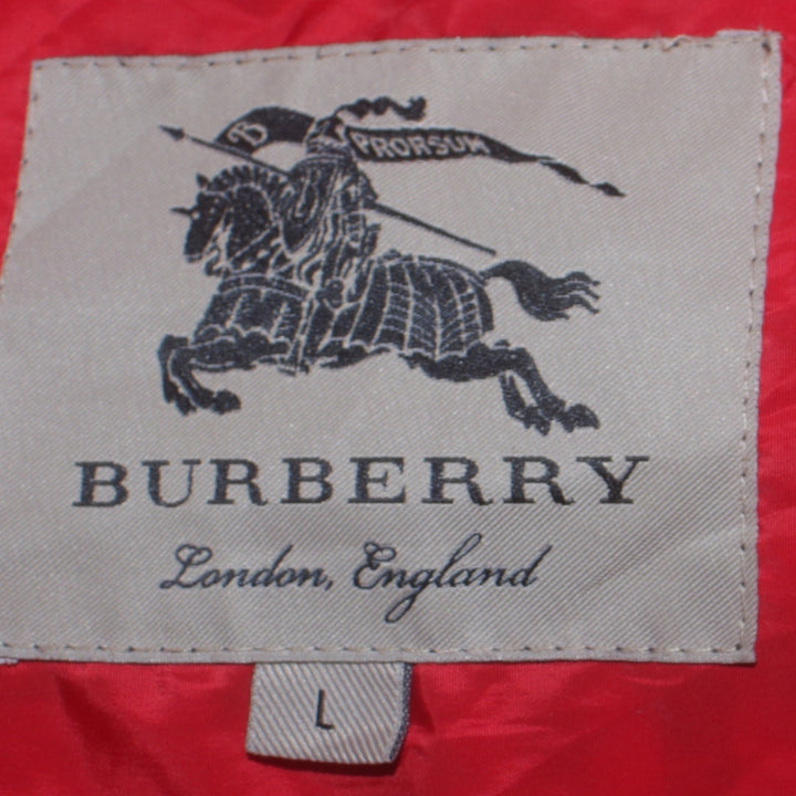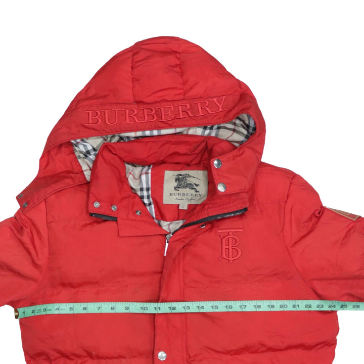 Burberry Red Puffer Jacket Men's Large Hooded Embroidered Logo Check Lining Outerwear