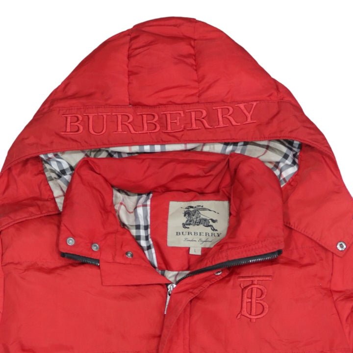 Burberry, Burberry jacket, Burberry puffer, Burberry coat, red Burberry jacket, red puffer jacket, men's Burberry, men's red jacket, men's puffer coat, hooded puffer, hooded jacket, quilted jacket, quilted puffer, designer jacket, designer outerwear, check lining jacket, Burberry check, embroidered logo jacket, TB logo, large size, size L, men's large jacket, winter jacket, warm coat, padded coat, casual outerwear, everyday jacket, classic Burberry style, red winter coat, insulated jacket, puffa jacket, street jacket, casual puffer, menswear, layering piece, cold weather coat, hooded outerwear, red hooded puffer, timeless jacket, luxury brand jacket, logo jacket, snap pocket jacket, zip front coat, long sleeve jacket, Burberry London, padded winter jacket