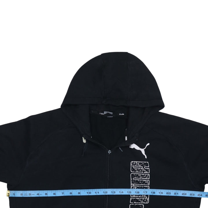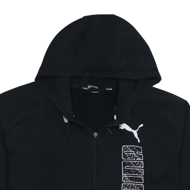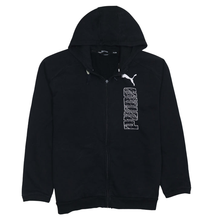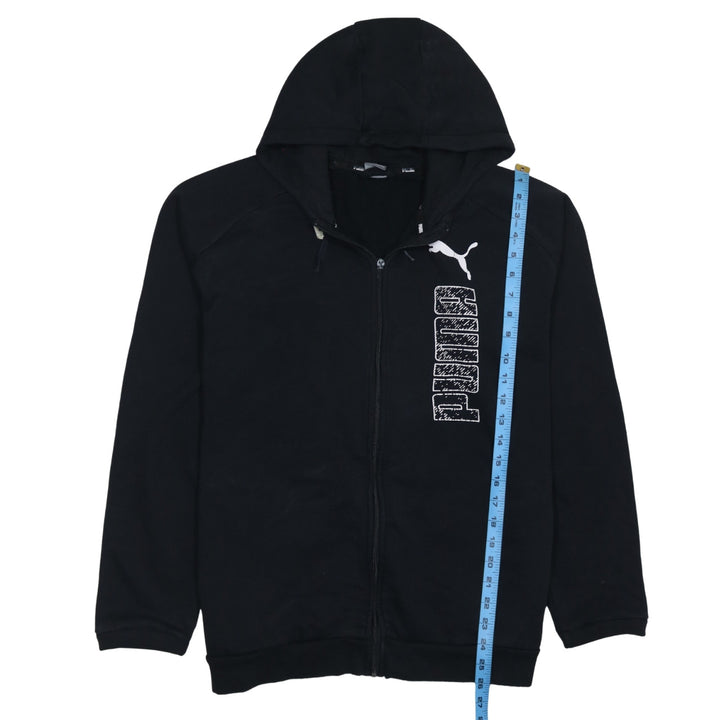 Puma Black Zip Hoodie Men's Large Printed Vertical Logo Drawstring Hood Casual Sweatshirt