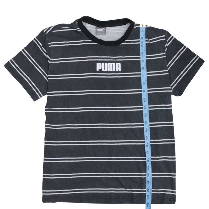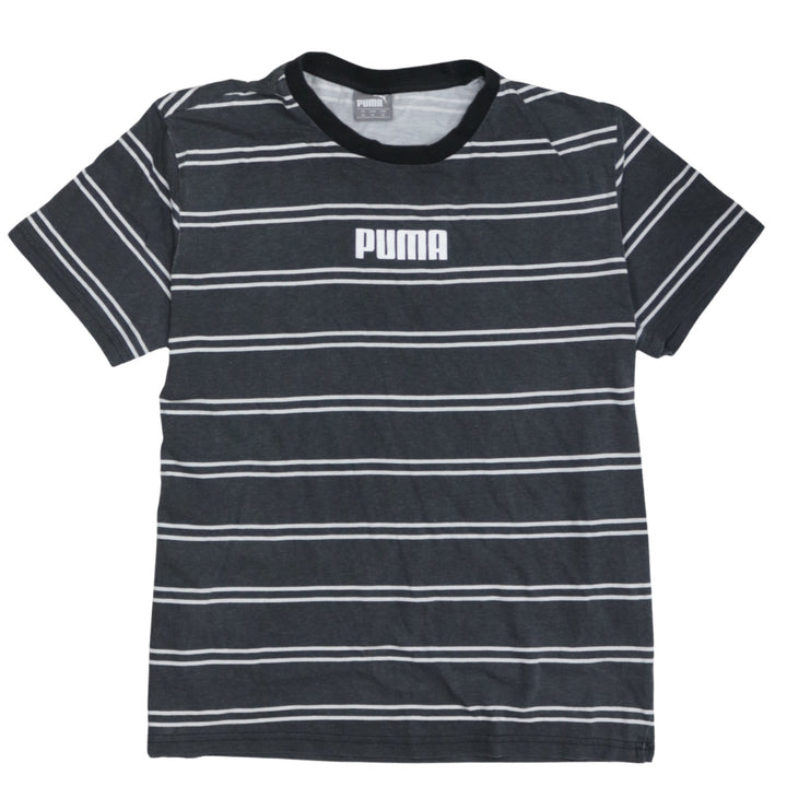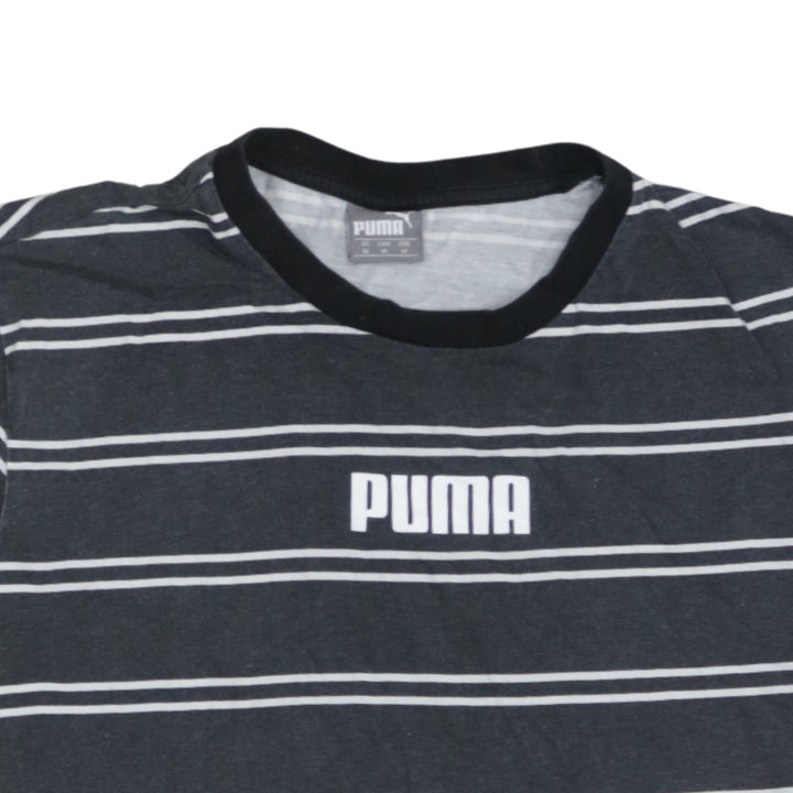 Puma, Puma T shirt, Puma tee, Puma striped T shirt, Puma stripe tee, Puma logo top, Puma casual top, Puma menswear, charcoal T shirt, black stripe T shirt, white stripe T shirt, men’s Medium T shirt, M size tee, crew neck T shirt, short sleeve top, cotton blend tee, sporty casual top, logo print T shirt, printed chest logo, horizontal stripes, everyday basic, casual wear, summer T shirt, skate tee, relaxed fit T shirt, soft jersey top, graphic logo tee, classic Puma logo, men’s casual clothing, second hand Puma, pre-owned Puma T shirt, slight fade, minimalist style tee, wardrobe essential, layering piece, street casual outfit, athleisure top, men’s fashion, online resale, Depop style tee, eBay Puma shirt, Vinted Puma top, charcoal grey T shirt, black and white stripes, vintage Puma T shirt, Puma crew neck tee