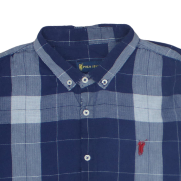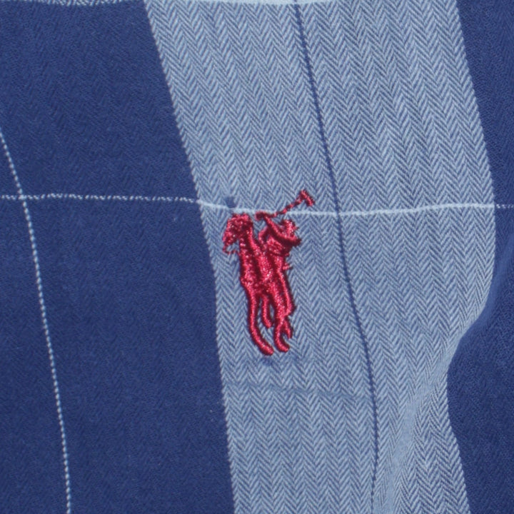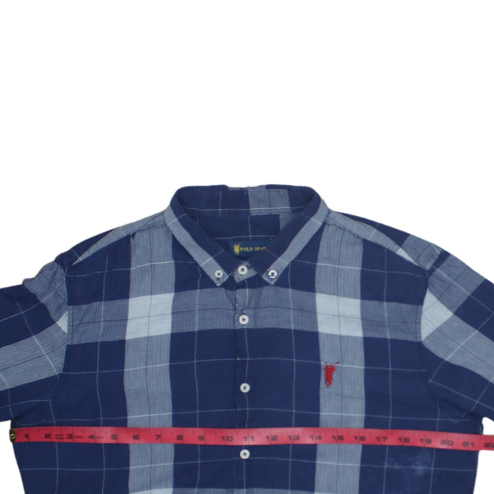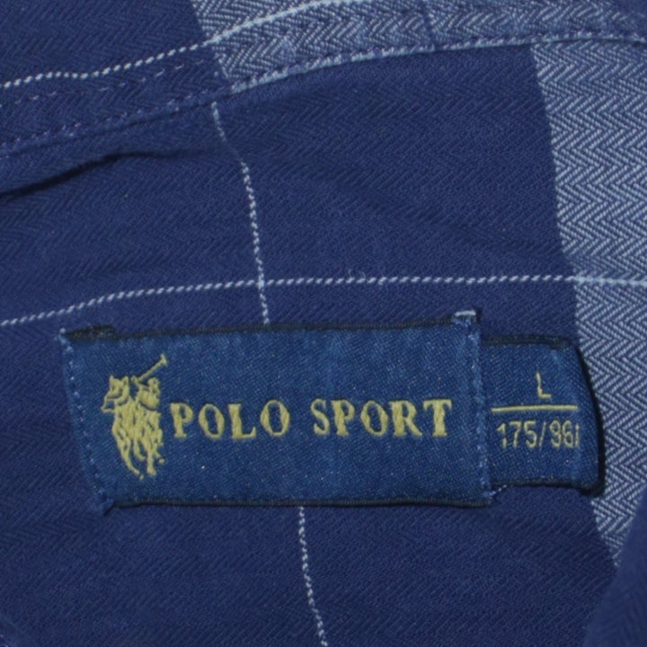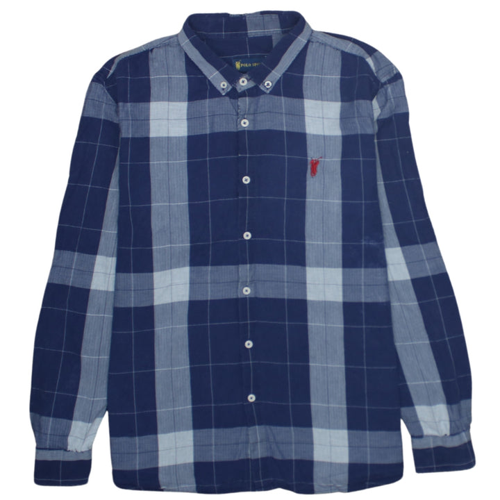 Polo Ralph Lauren, Ralph Lauren shirt, navy check shirt, blue checked shirt, men's large shirt, men's L shirt, long sleeve shirt, button up shirt, casual shirt, smart casual shirt, collared shirt, button down collar, embroidered pony logo, red pony logo, designer shirt, branded shirt, nylon shirt, lightweight shirt, checked top, plaid shirt, navy blue top, men's fashion, classic style, casual wear, layering shirt, everyday shirt, work shirt, office shirt, weekend shirt, menswear, pre-owned Ralph Lauren, second hand Ralph Lauren, checked flannel style, large size shirt, relaxed fit shirt, oversized fit shirt, grid check pattern, long sleeve top, cuffed sleeves, wardrobe staple, timeless design, Polo shirt long sleeve, blue casual shirt, stylish men's shirt, vintage Ralph Lauren style, classic checked shirt