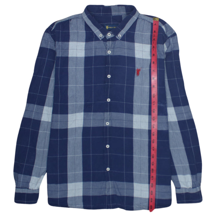 Polo Ralph Lauren Navy Blue Check Shirt Men's Large Embroidered Pony Long Sleeve Casual