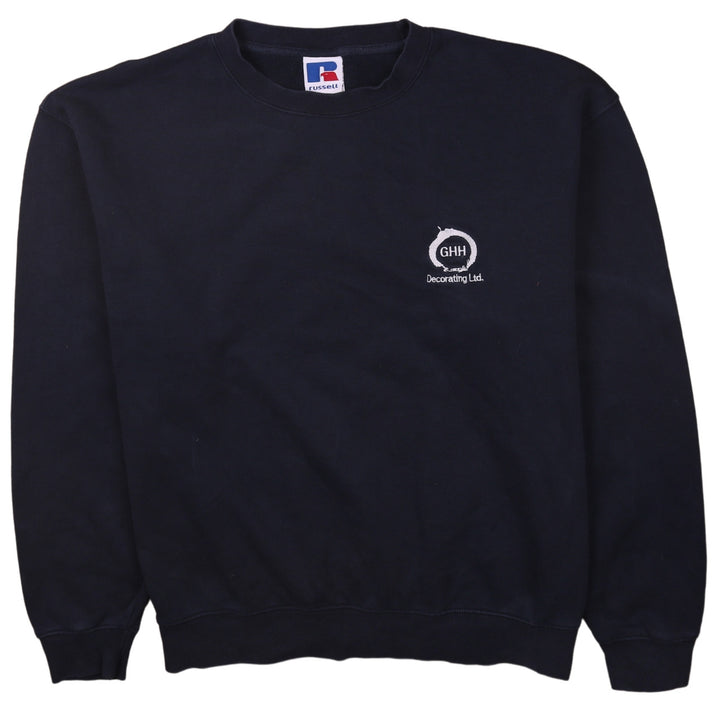 Russell Athletic sweatshirt, Russell crewneck, Russell navy sweatshirt, navy blue sweatshirt, men's 2XL sweatshirt, XXL jumper, oversized fleece top, crew neck pullover, embroidered logo sweatshirt, workwear sweatshirt, GHH Decorating logo, navy fleece jumper, casual loungewear top, men's Russell Athletic 2XL, classic crewneck, long sleeve pullover, ribbed cuffs sweatshirt, ribbed hem jumper, soft fleece lining, comfy everyday sweatshirt, men's casual top, big size sweatshirt, plus size men's jumper, navy athletic sweatshirt, layering piece, warm winter sweatshirt, cosy fleece sweater, minimal logo sweatshirt, navy crew neck, Russell 2XL fleece, men's long sleeve top, relaxed fit sweatshirt, navy casual wear, embroidered work logo, men's pullover fleece, heavyweight sweatshirt, Russell tag 2XL, chest embroidery, dark blue jumper, men's clothing, second hand sweatshirt, pre-owned Russell Athletic, loungewear jumper, everyday basic sweatshirt, wardrobe essential, classic navy top, cosy men's fleece