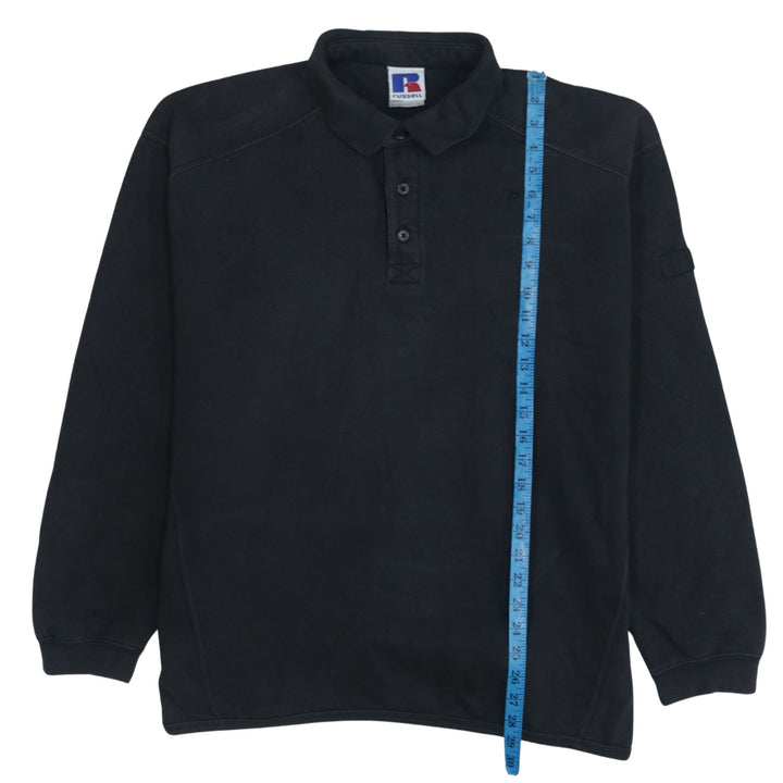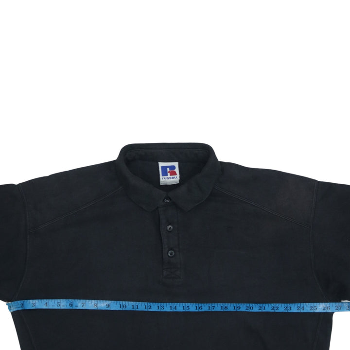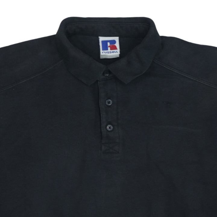 Russell Athletic Vintage 90s XL Black Long Sleeve Polo Shirt Cotton