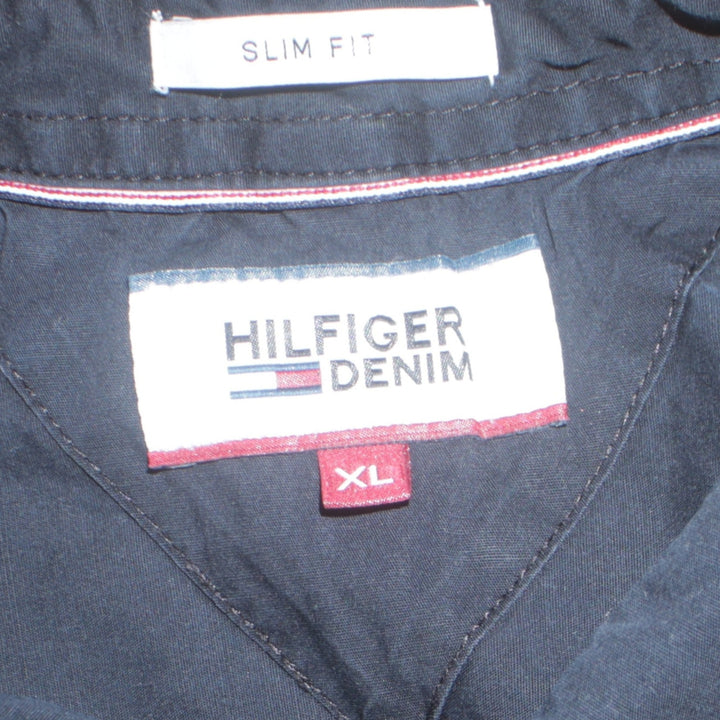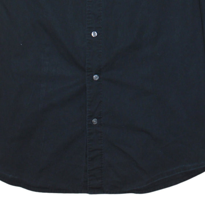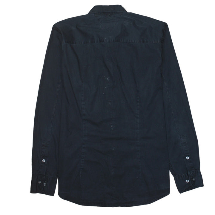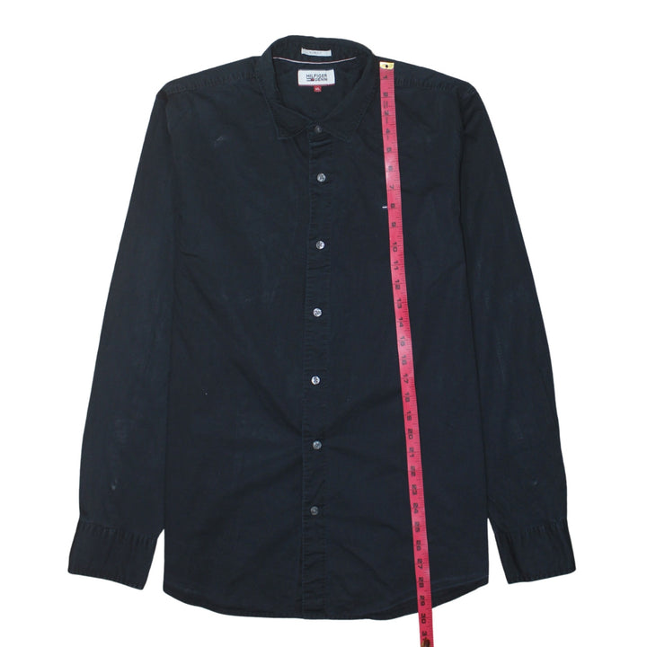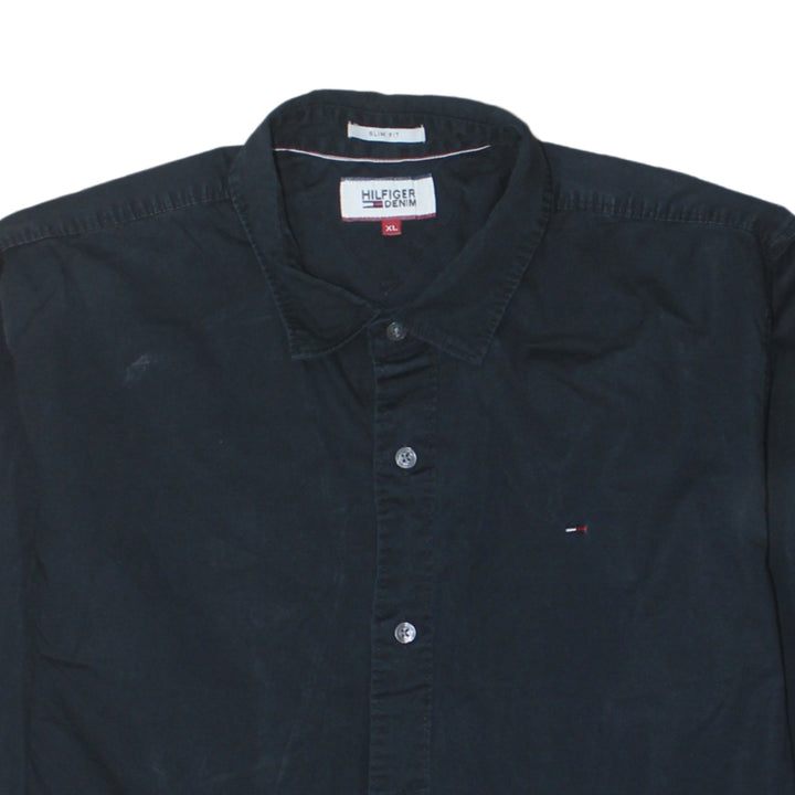 Tommy Hilfiger Black Shirt Men's XLarge Embroidered Chest Flag Logo Long Sleeve Button Up