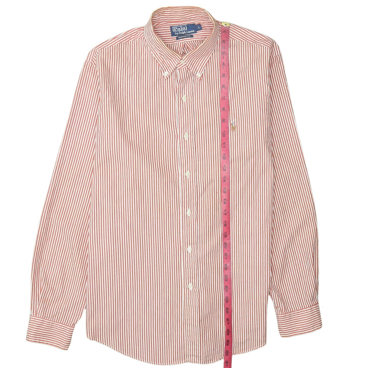 Polo Ralph Lauren, Ralph Lauren shirt, Polo shirt long sleeve, pink stripe shirt, pink and white striped shirt, men’s large shirt, L size shirt, embroidered pony logo, button up shirt, button down collar shirt, oxford shirt, cotton shirt, casual shirt, smart casual shirt, long sleeve cotton shirt, classic fit shirt, relaxed fit shirt, men’s designer shirt, dress shirt, work shirt, office shirt, weekend shirt, preppy shirt, striped cotton shirt, vertical stripe shirt, pink Ralph Lauren, collared shirt, button cuff shirt, menswear, wardrobe staple, layering piece, timeless style, A grade condition, chest 23 inches, length 30 inches, arm 20 inches, polo top, casual top, everyday shirt, vintage Polo Ralph Lauren, classic Ralph Lauren, mens pink shirt