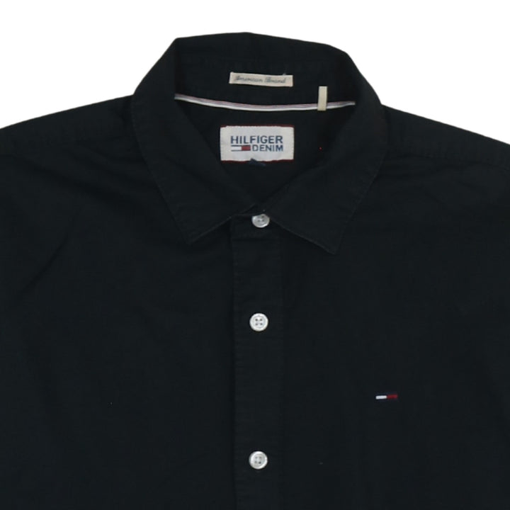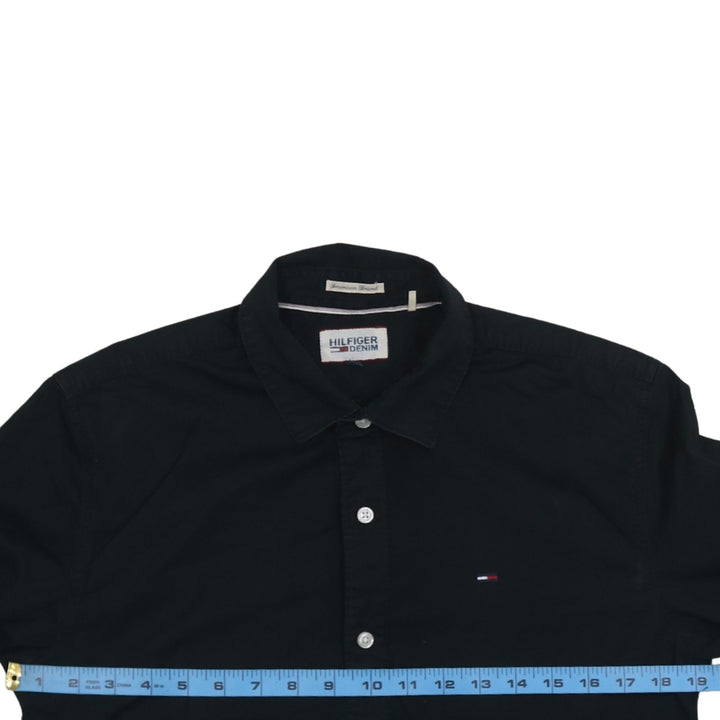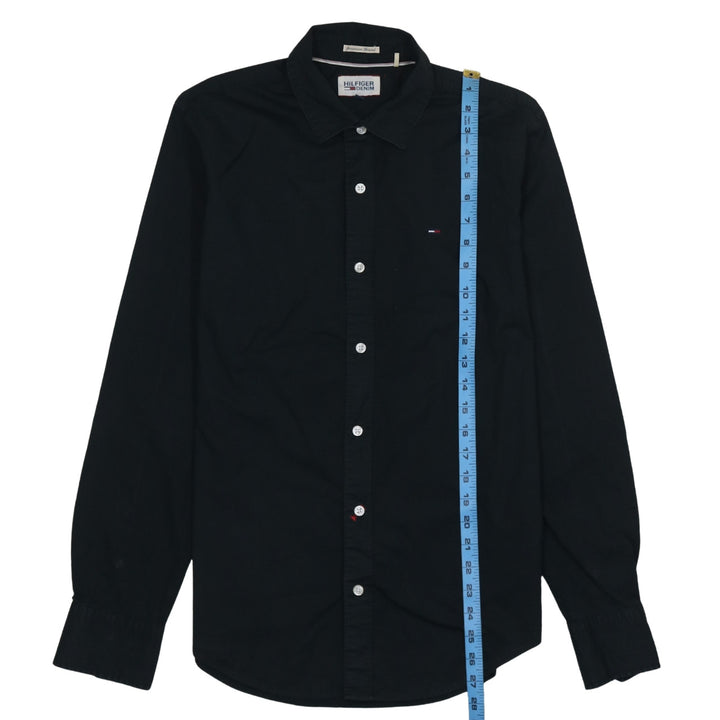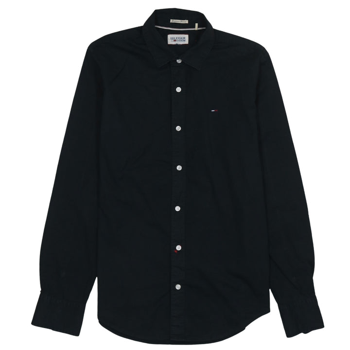 Tommy Hilfiger, Tommy Hilfiger shirt, black shirt, women's black shirt, women's Tommy Hilfiger, women's long sleeve shirt, button up shirt, button front shirt, smart casual shirt, classic shirt, cotton shirt, stretch cotton shirt, embroidered logo shirt, flag logo shirt, collared shirt, tailored shirt, slim fit shirt, relaxed fit shirt, size medium shirt, women's medium shirt, black cotton top, casual top, office shirt, workwear shirt, everyday shirt, layering shirt, long sleeve top, smart top, branded shirt, designer shirt, logo shirt, minimal shirt, plain black shirt, curved hem shirt, cuffed sleeve shirt, wardrobe staple, capsule wardrobe, pre-owned designer, second hand Tommy Hilfiger, sustainable fashion, timeless style, classic black shirt, women's fashion, smart casual outfit, button cuff shirt, cotton elastane shirt, dress shirt, casual blouse, long sleeve blouse