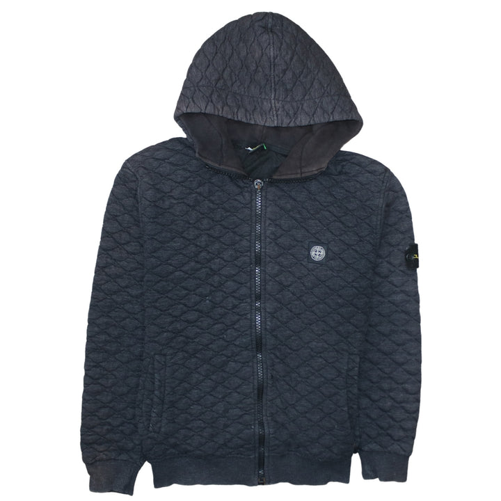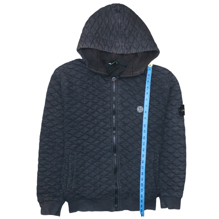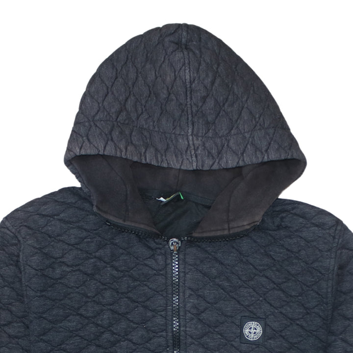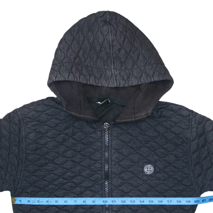 Stone Island Charcoal Hooded Jacket Men's Medium Quilted Full Zip Badge Logo Hoodie