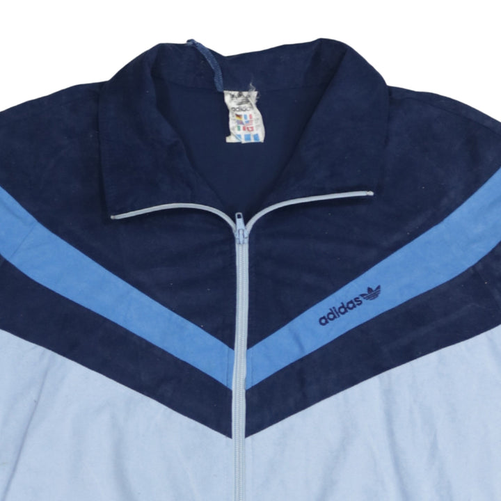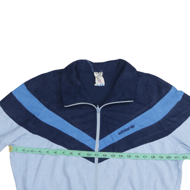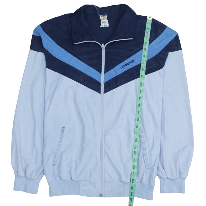 Adidas Light Blue Track Jacket Men's Medium Chevron Panel Embroidered Trefoil Zip Top