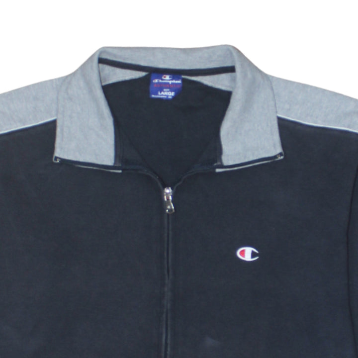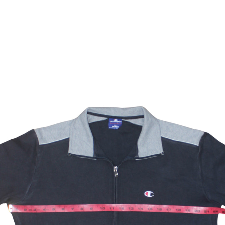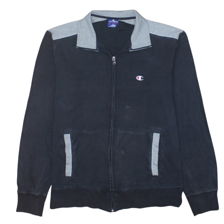 Champion Black Track Jacket Men’s Large Full Zip Grey Panels Embroidered Logo Sweatshirt Top