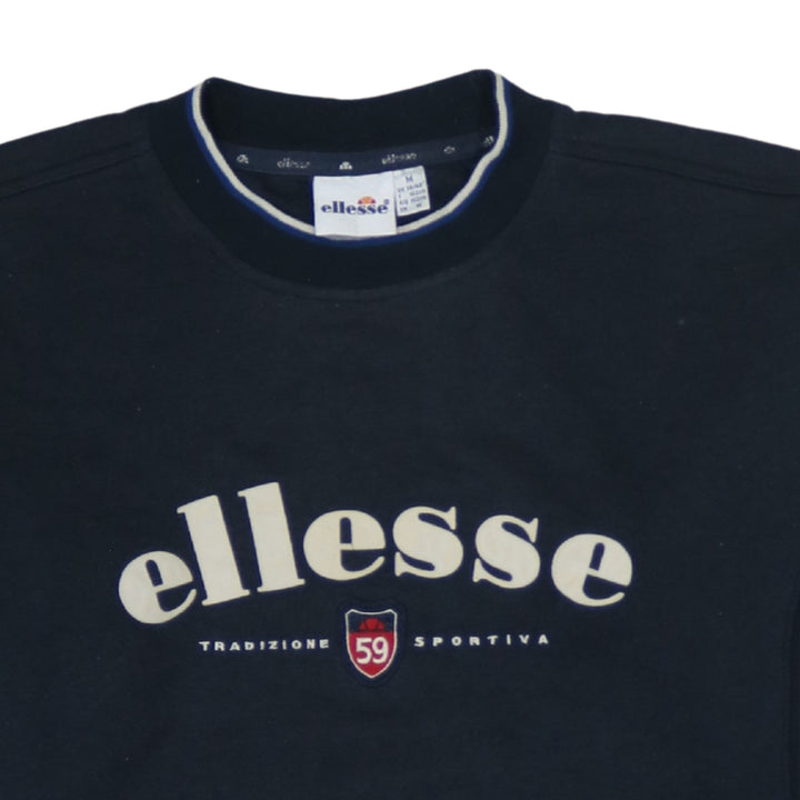 Ellesse Black Sweatshirt Men's Medium Printed Logo Crewneck Ribbed Cuffs Pullover Top