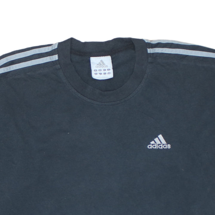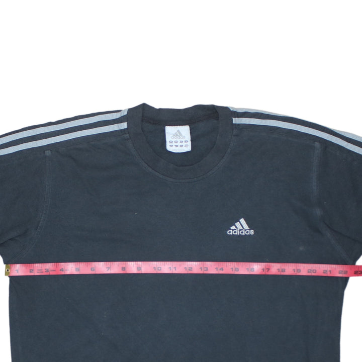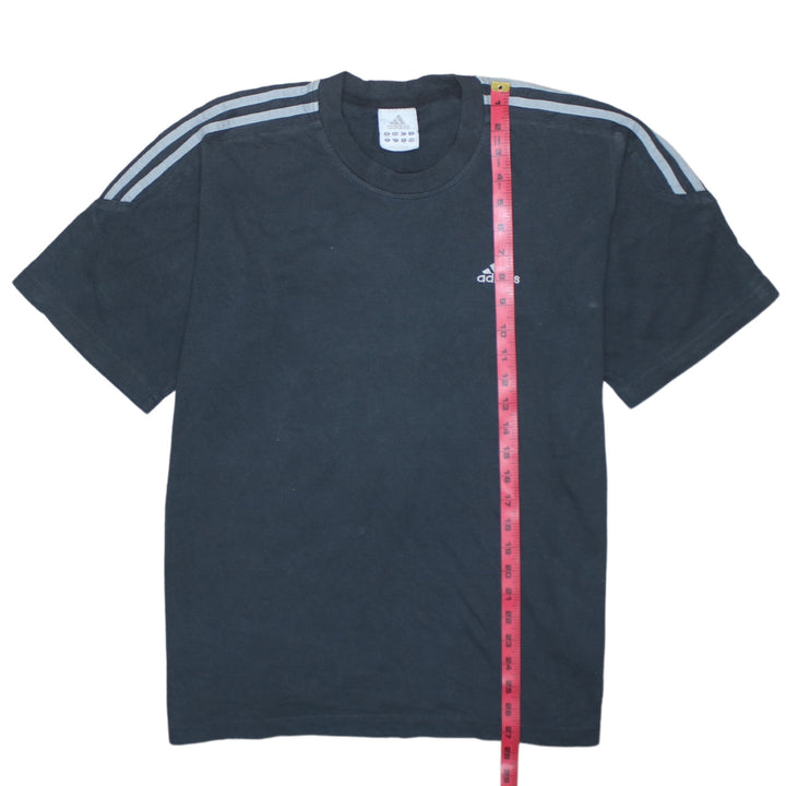 Adidas Black T Shirt Men's Large Embroidered Logo Three Stripe Sleeves Casual Top