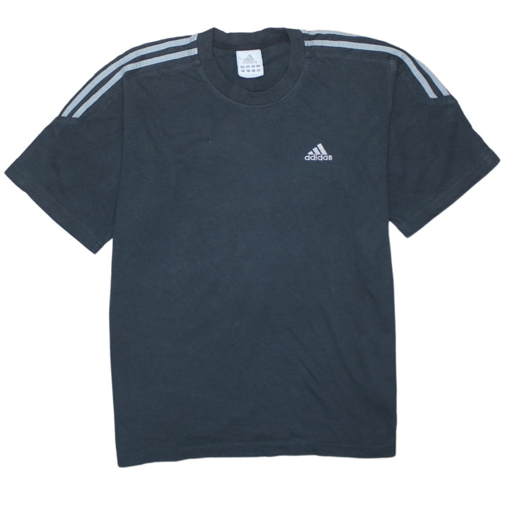 A great classic Adidas black tee, perfect for everyday wear, training, or casual outfits. The embroidered logo and three-stripe shoulders give it that timeless sportswear look, while the relaxed fit and soft fabric keep it comfortable all day. Easy to style with jeans, joggers or shorts – a versatile wardrobe staple.