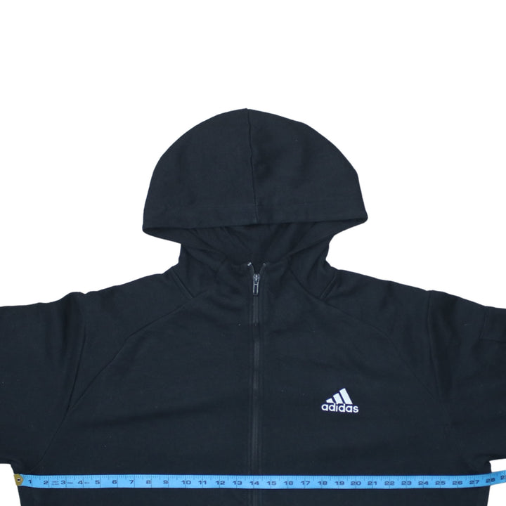 Adidas Black Full Zip Hoodie Men's XXLarge Embroidered Chest Logo Split Pockets Sweatshirt