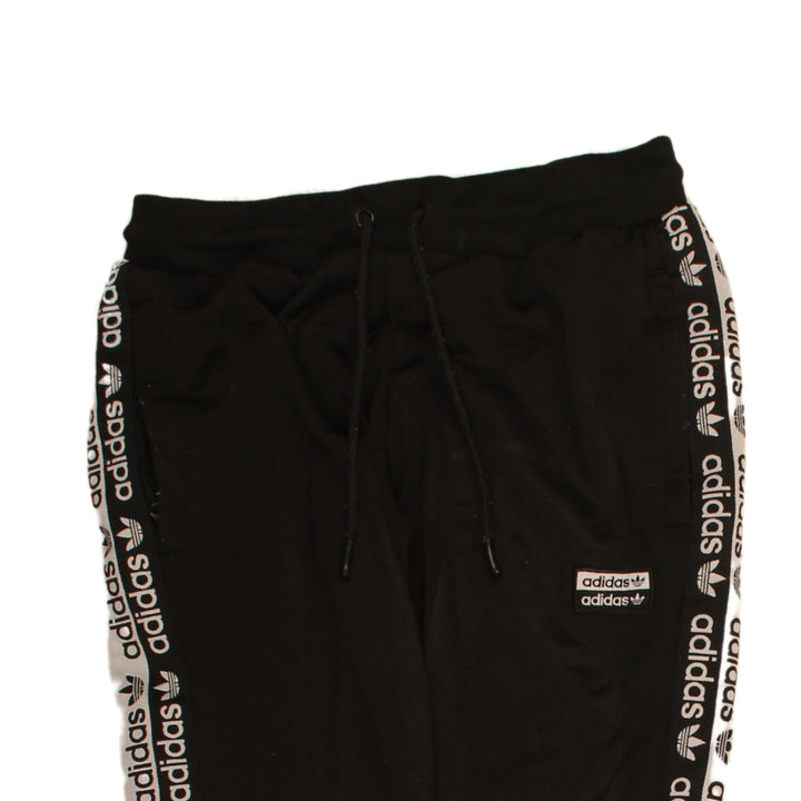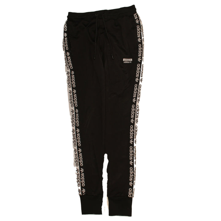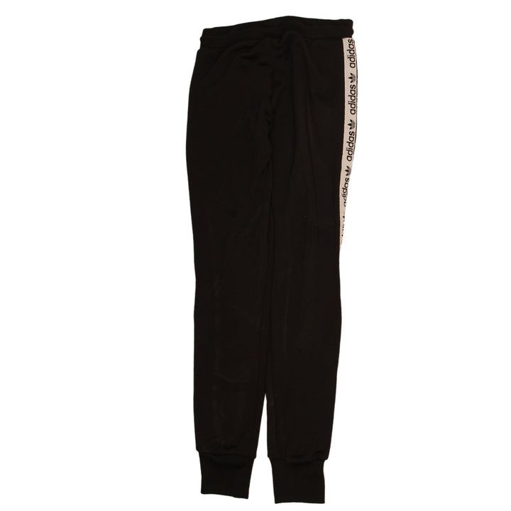 Adidas Black Joggers Women’s Small Logo Side Tape Cuffed Hem Drawstring Sweatpants