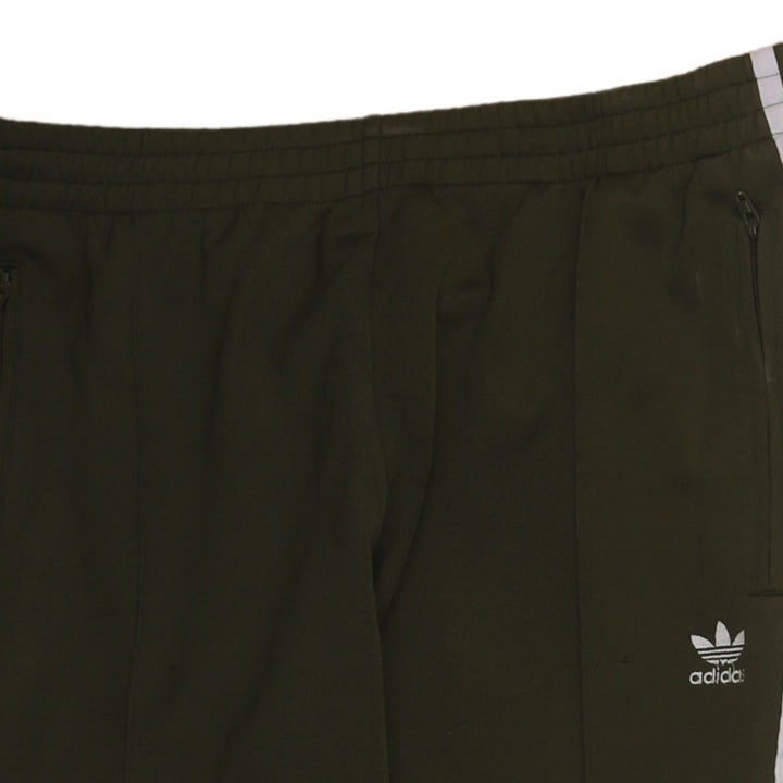 Key Features: Dark green colour, white side stripes, embroidered Trefoil logo, elastic waistband, zip pockets