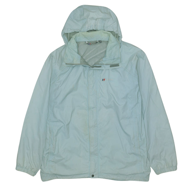 Berghaus Light Blue Hooded Windbreaker Jacket Women’s Medium Gore-Tex Zip Pockets Outdoor Shell