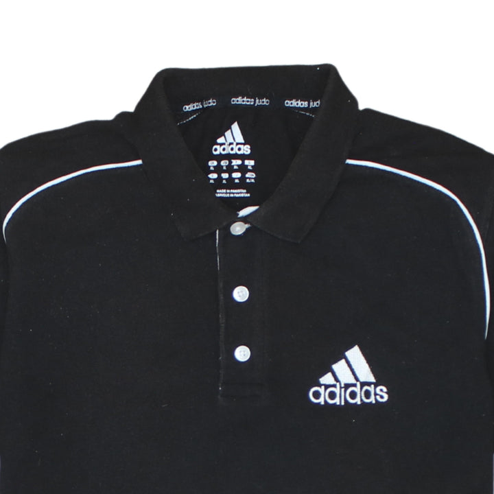 Adidas Black Polo Shirt Women's XLarge Embroidered Chest Logo Contrast Piping Short Sleeve Top