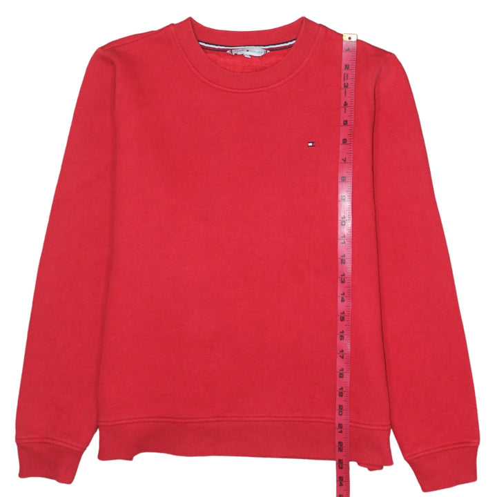 Tommy Hilfiger Red Sweatshirt Women's Medium Embroidered Flag Logo Crewneck Pullover Jumper