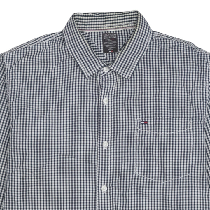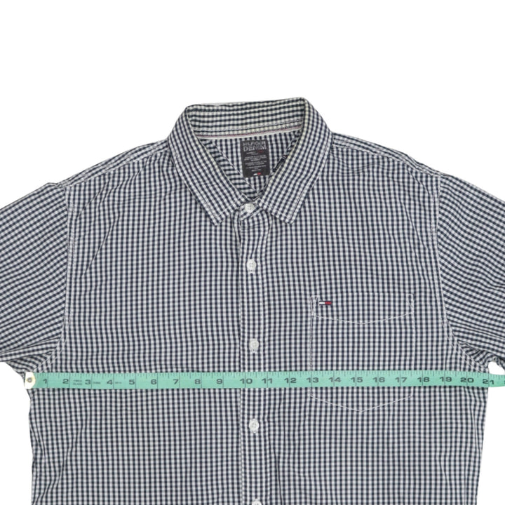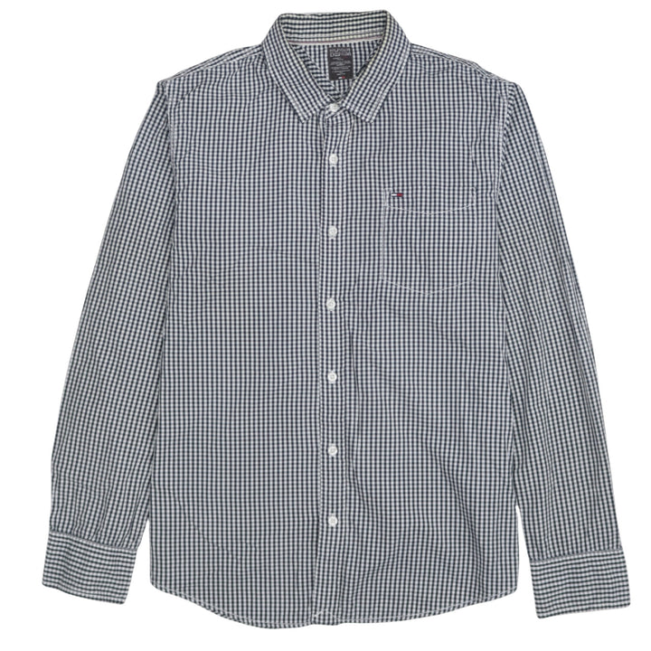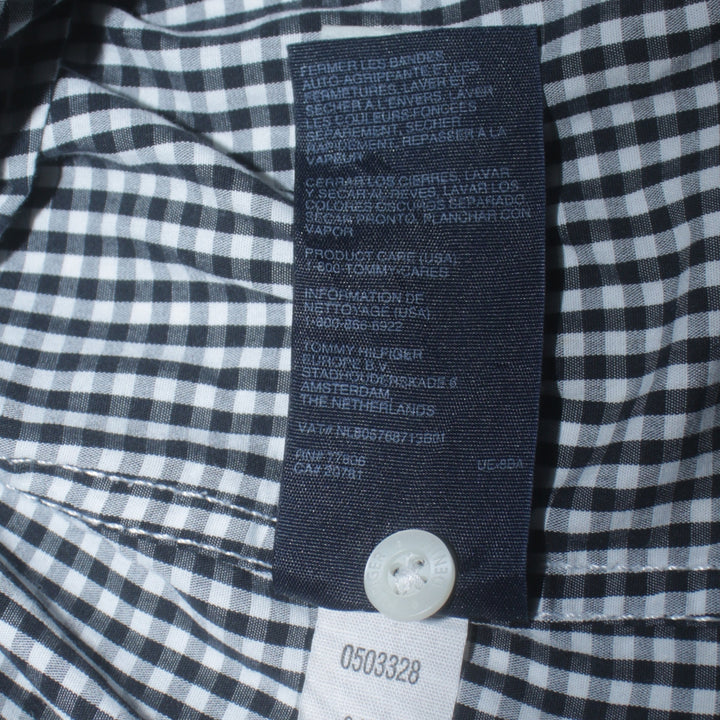 Tommy Hilfiger, Tommy Hilfiger shirt, black gingham shirt, black check shirt, women's shirt, women's XLarge shirt, XL shirt, long sleeve shirt, button up shirt, button front shirt, casual shirt, smart casual shirt, gingham check, black and white check, embroidered logo shirt, chest pocket shirt, classic collar shirt, collared shirt, oversized fit shirt, relaxed fit shirt, nylon shirt, casual top, layering shirt, pre-owned Tommy Hilfiger, designer shirt, branded shirt, timeless style shirt, everyday shirt, office shirt, workwear shirt, weekend shirt, minimalist shirt, monochrome shirt, checked blouse, women's checked shirt, Tommy flag logo, wardrobe staple, breathable shirt, lightweight shirt, A grade condition, second hand designer, resale fashion, Tommy Hilfiger womenswear, long sleeve blouse, button cuff shirt, vintage Tommy Hilfiger shirt