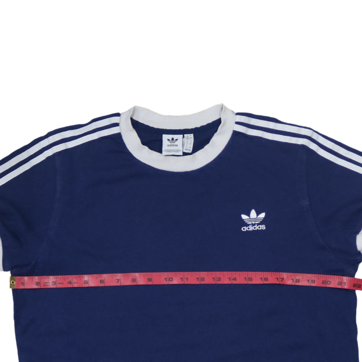 Adidas Navy Blue Ringer T Shirt Women’s XLarge Trefoil Printed Logo Three Stripe Top