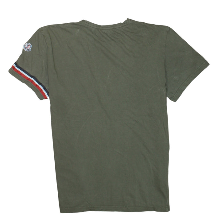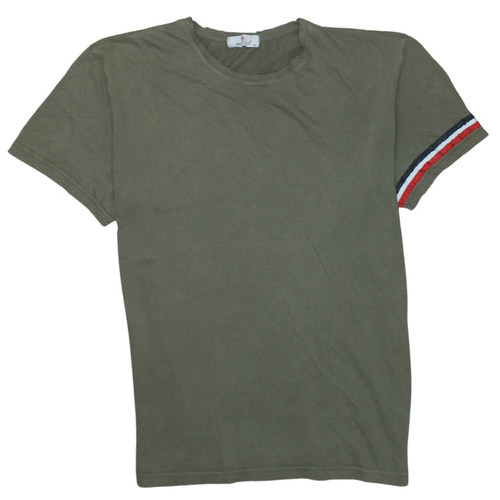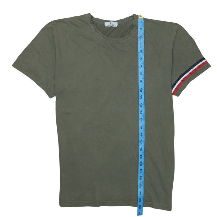 Moncler Olive Green T Shirt Women’s XLarge Tricolour Sleeve Stripe Logo Patch Casual Top