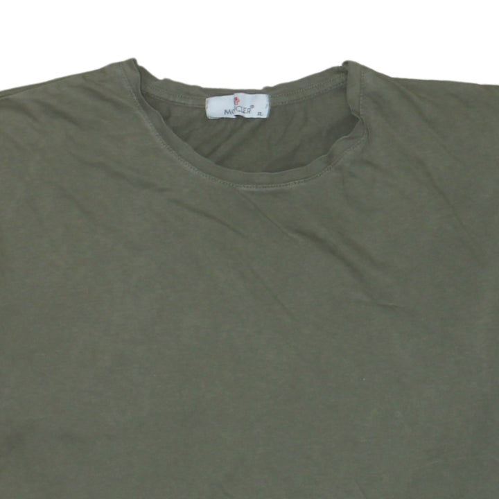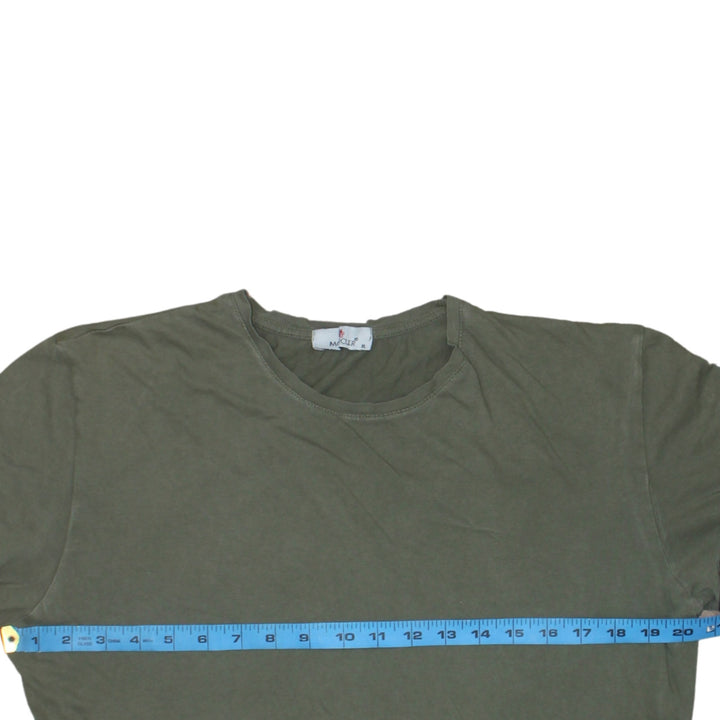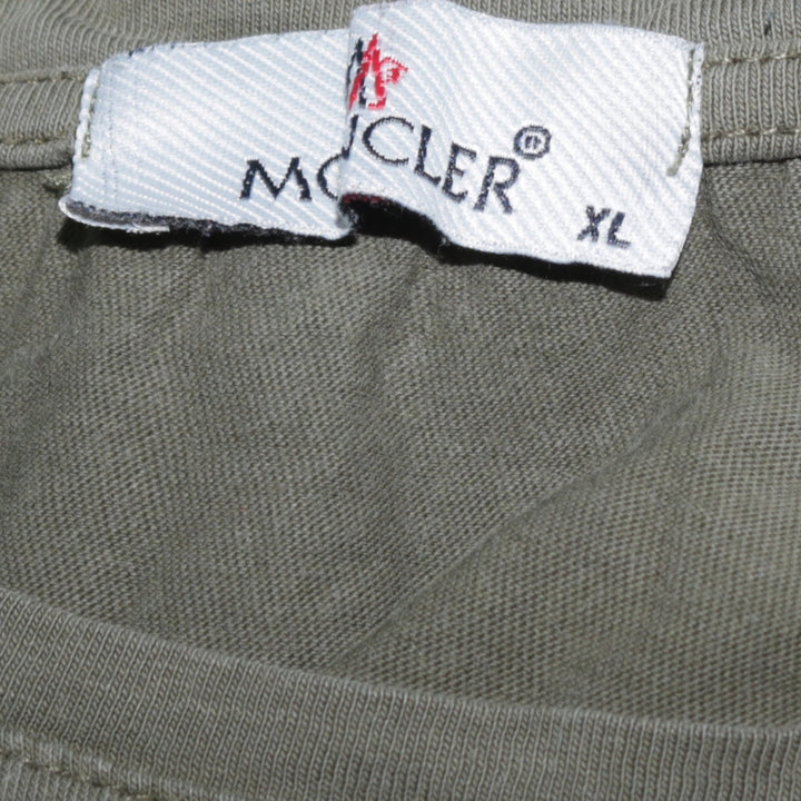 Moncler, Moncler T shirt, Moncler tee, olive green Moncler, green T shirt, women’s XLarge T shirt, XL tee, short sleeve top, casual top, crewneck T shirt, Moncler logo patch, sleeve logo, tricolour stripe sleeve, red white navy stripe, cotton T shirt, soft jersey top, relaxed fit tee, oversized fit T shirt, women’s casual wear, designer T shirt, premium tee, branded T shirt, classic crew neck, minimalist design, everyday basic, layering piece, summer top, spring outfit, autumn layering, Moncler women’s clothing, Moncler casual top, Moncler short sleeve, logo sleeve tee, olive green women’s top, chest 20.5 inch, length 26 inch, arm 3 inch, A vintage quality, pre-owned designer, Moncler fashion, simple Moncler tee, staple wardrobe piece, casual outfit essential, street casual look, neutral colour T shirt, understated designer, Italian designer tee