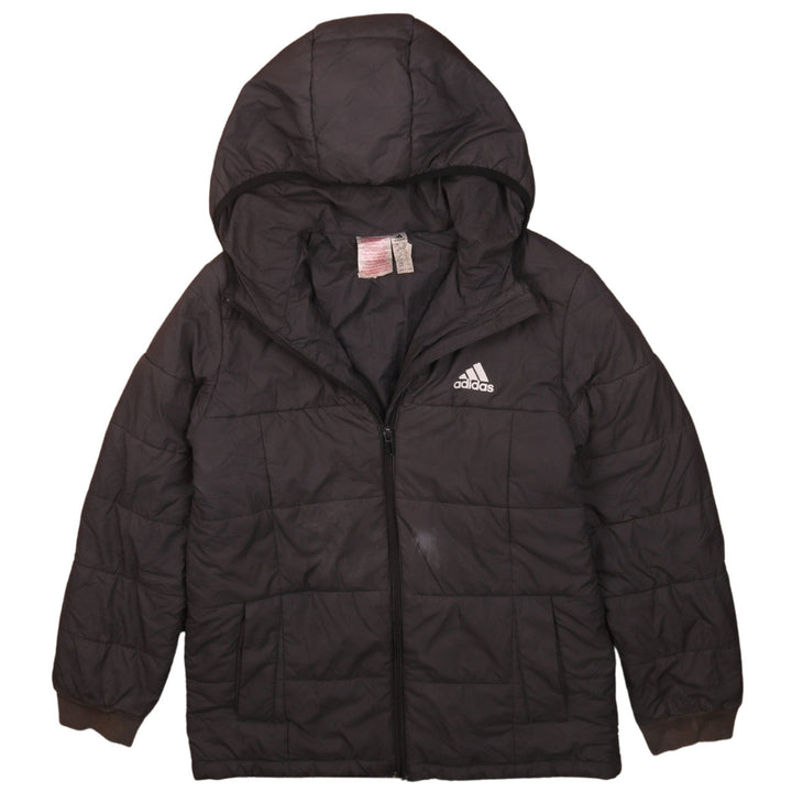 Adidas Women's 90s Grey Hooded Puffer Jacket M Vintage Full Zip