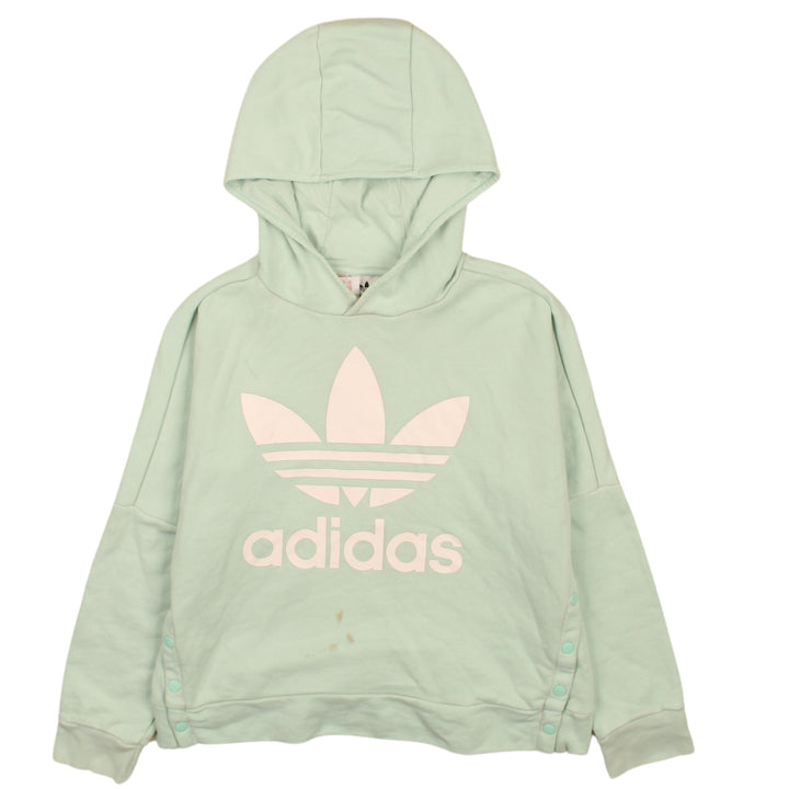 Adidas Mint Green Hoodie Women's Medium Trefoil Printed Logo Side Snap Pullover Sweatshirt