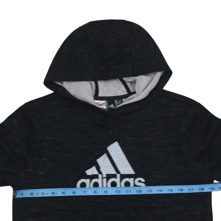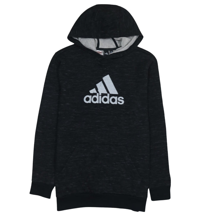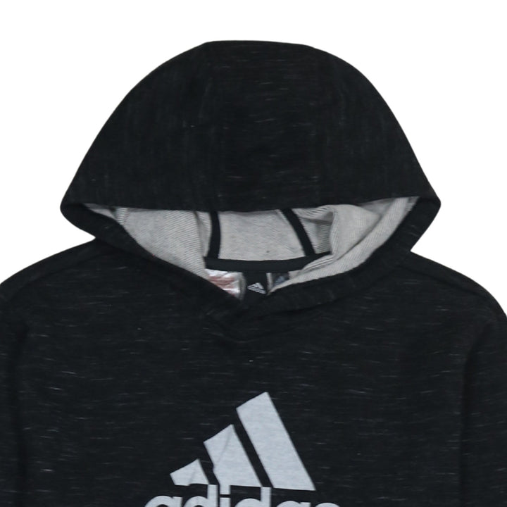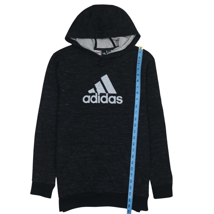 Adidas Black Marl Hoodie Women’s Large Printed Logo Front Pouch Pullover Sweatshirt
