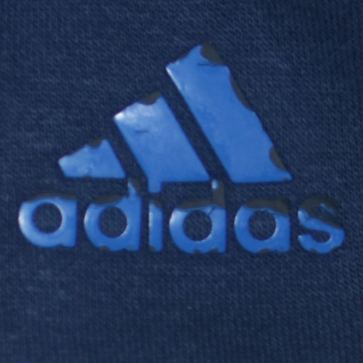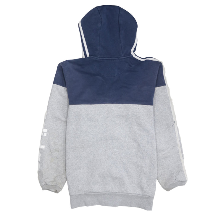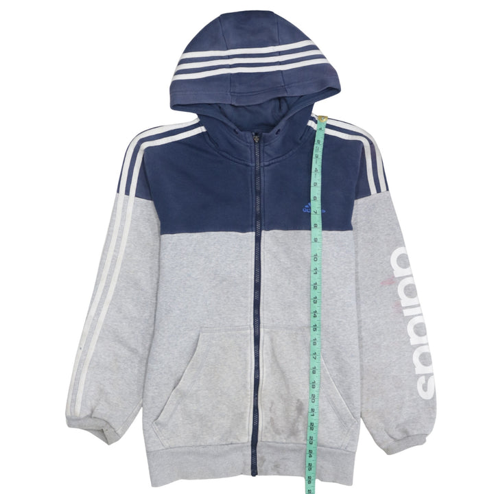 Adidas Navy Grey Hoodie Men’s Small Full Zip Three Stripe Sleeves Printed Logo Sweatshirt
