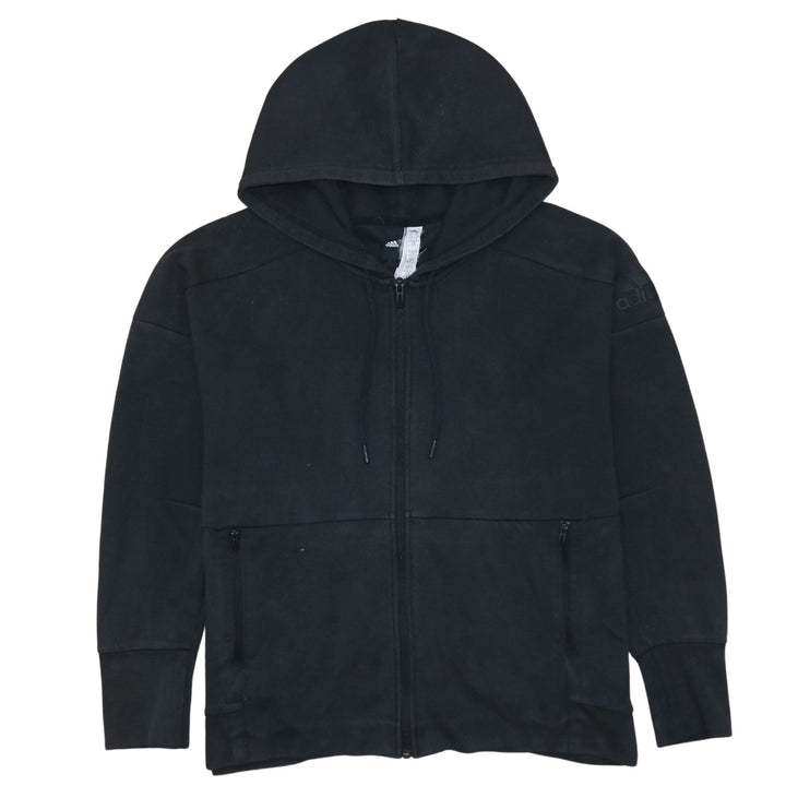 Adidas Black Full Zip Hoodie Women’s XLarge Drawstring Hood Zip Pockets Small Logo Sweatshirt