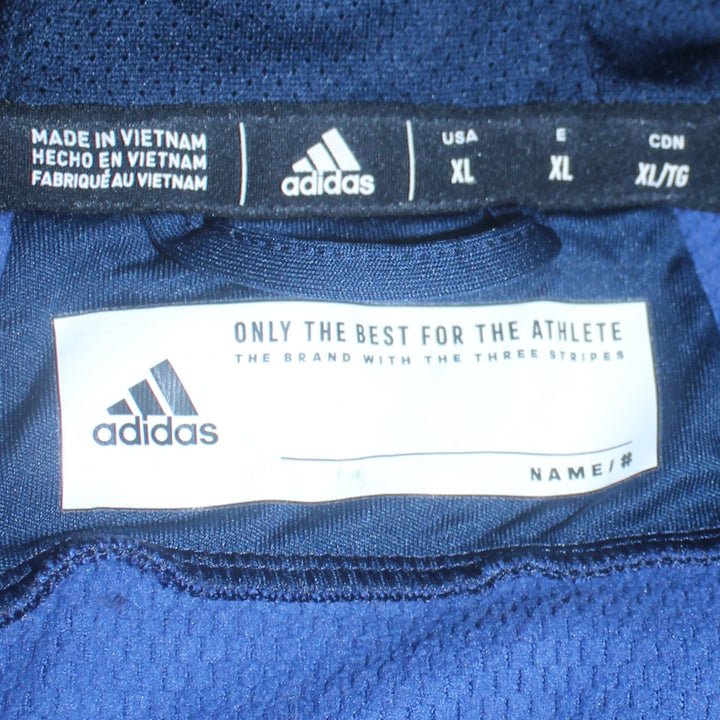 Adidas Navy Blue Hoodie Men's XLarge Full Zip Printed Logos Front Pockets Sweatshirt