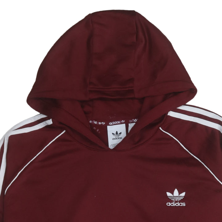 Adidas Burgundy Red Hoodie Men's XXLarge Trefoil Logo Three Stripe Sleeves Pullover Sweatshirt
