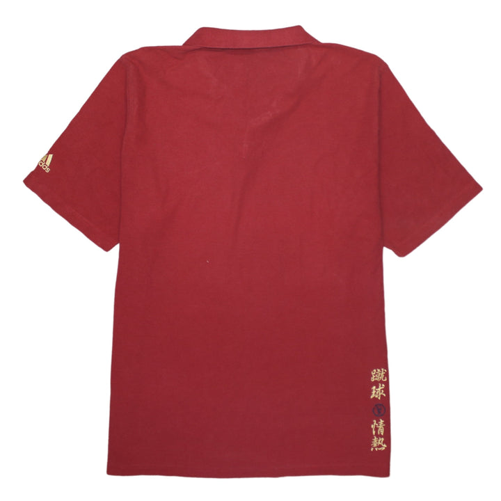 • Key Features: Burgundy red colour, embroidered Chinese text, Adidas sleeve logo, classic polo collar