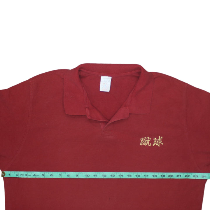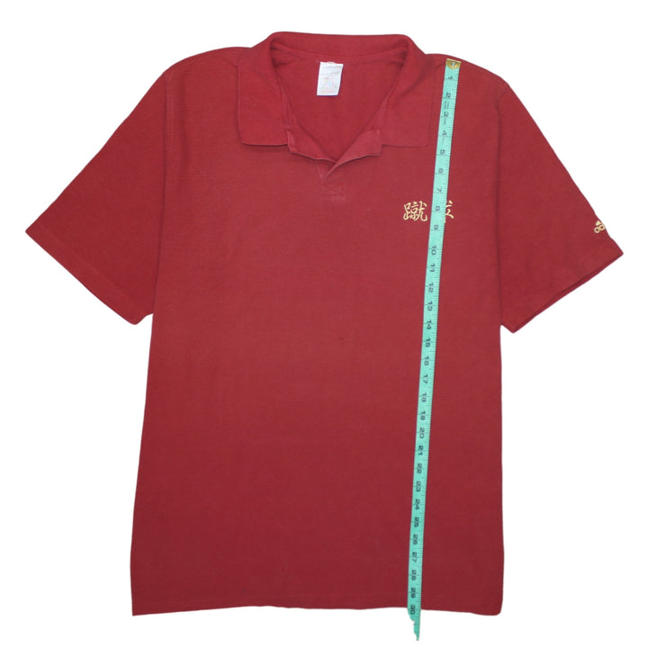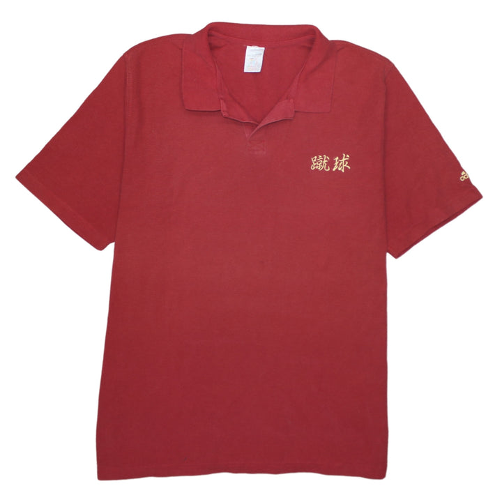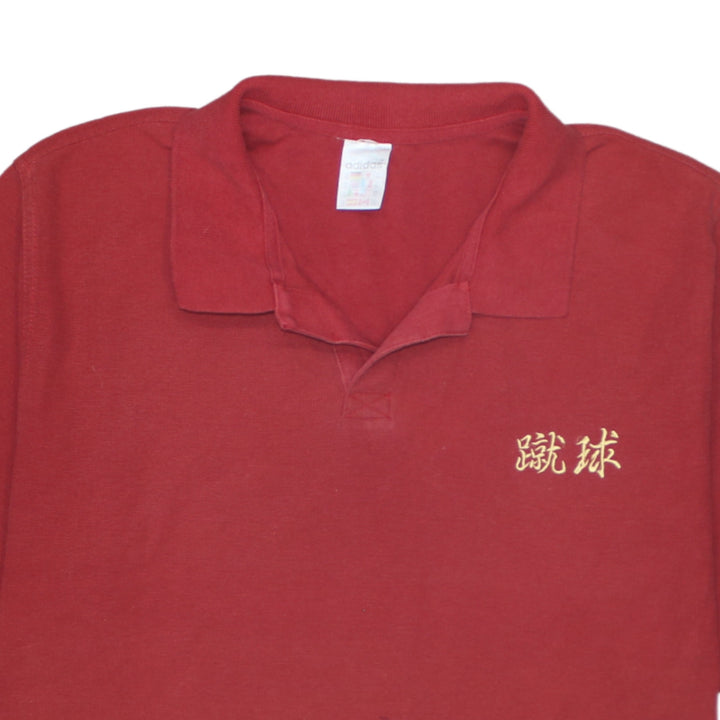 Adidas Burgundy Red Polo Shirt Men's XLarge Embroidered Chinese Text Logo Short Sleeve Top