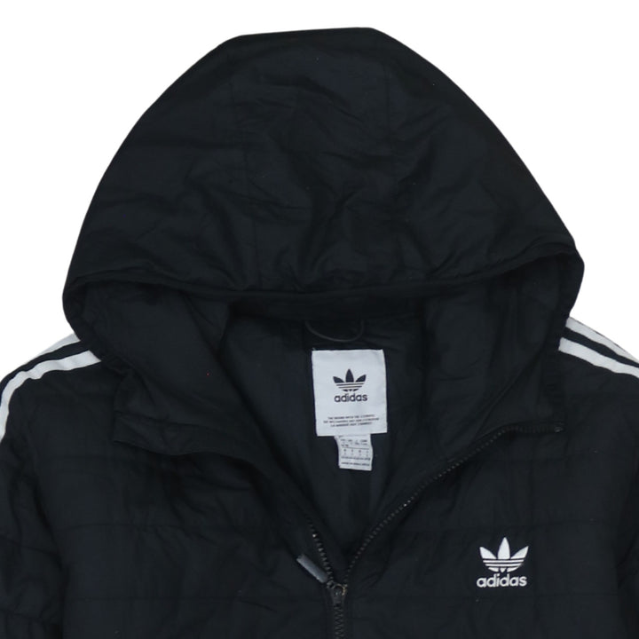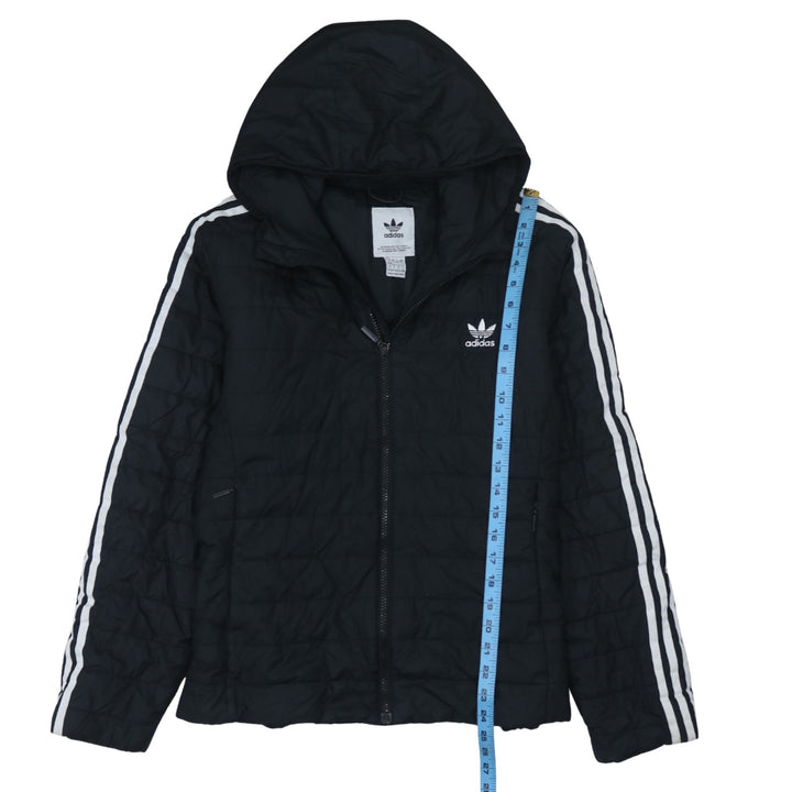 Adidas, Adidas jacket, Adidas puffer, Adidas hooded jacket, Adidas Trefoil, Adidas three stripes, black Adidas jacket, black hooded puffer, women's Adidas jacket, women's puffer coat, women's large jacket, L puffer jacket, quilted jacket, padded coat, casual outerwear, sports jacket, athleisure jacket, zip up jacket, full zip puffer, hooded outerwear, black coat, three stripe sleeves, embroidered logo jacket, Adidas Originals, winter jacket, autumn coat, everyday jacket, lightweight puffer, street casual jacket, classic Adidas style, Adidas black puffer large, warm jacket, sporty jacket, layering piece, festival jacket, travel jacket, gym cover up, commuter coat, durable outerwear, polyester jacket, wool blend jacket, women's casual coat, Adidas L women's, Trefoil chest logo, three stripe arms, black Adidas coat, branded puffer, warm outerwear