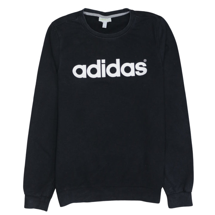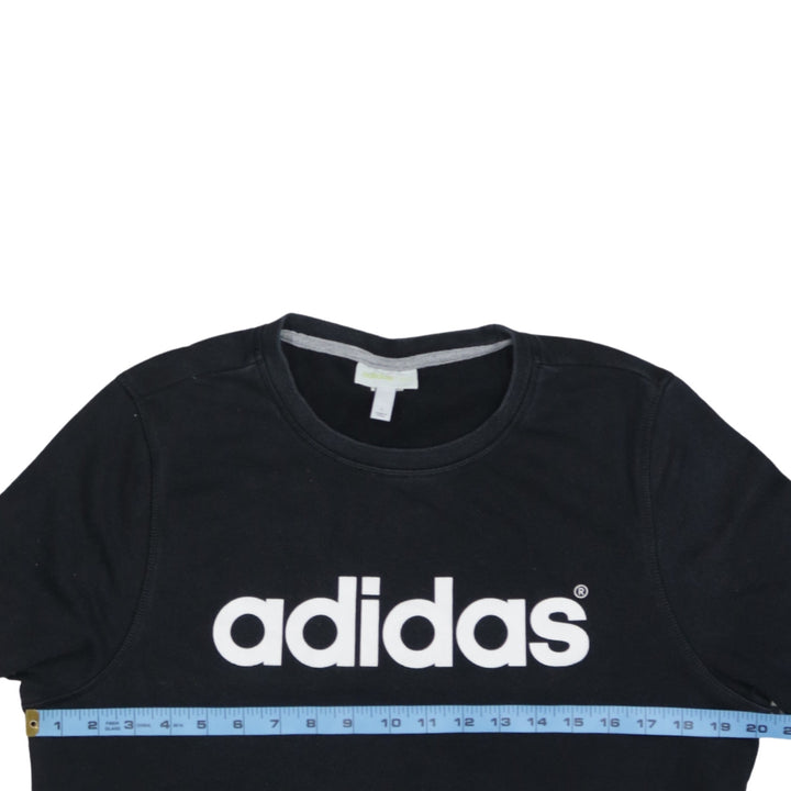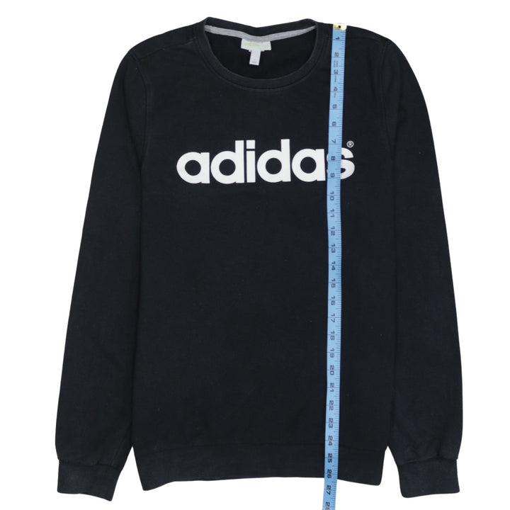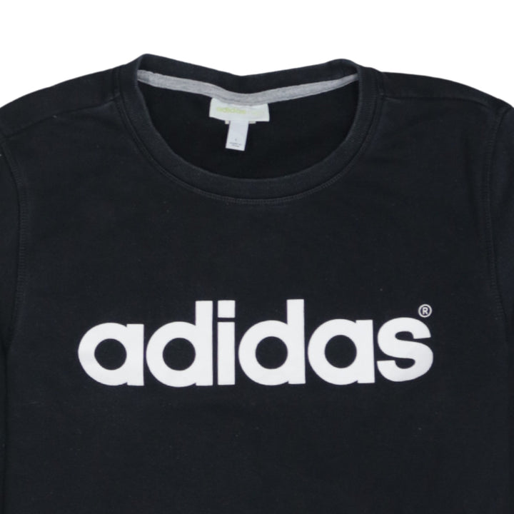 Adidas Black Sweatshirt Women's Large Printed Logo Crewneck Ribbed Cuffs Pullover Top