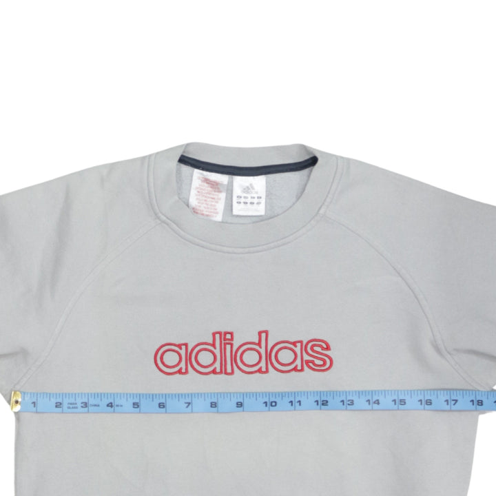 Adidas, Adidas sweatshirt, Adidas jumper, Adidas crewneck, light grey Adidas, grey sweatshirt, women's Adidas, women's sweatshirt, women's medium, size M, embroidered logo, red adidas logo, three stripe sleeves, 3 stripes, crew neck pullover, fleece top, cosy jumper, casual loungewear, sportswear top, athleisure sweatshirt, raglan sleeve sweatshirt, ribbed cuffs, ribbed hem, soft fleece lining, classic Adidas style, everyday basic, casual grey jumper, long sleeve top, Adidas fleece, Adidas women's medium grey, embroidered chest logo, relaxed fit sweatshirt, comfy pullover, adidas branding, vintage Adidas sweatshirt, 00s Adidas, classic sports sweatshirt, gym cover up, lounge top, casual wear, layering piece, Adidas grey pullover, women's casual jumper, Adidas logo sweater, sporty crewneck, Adidas three stripes top